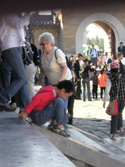 The sides of the stairs in this complex were quite slippery — I enjoyed a slide down one set, then I noticed that kids were virtually lining up to slide down another set. After this you’ll see another kid being supported by his dad on the way down, but this guy was doing it over and over again all on his own. I enjoyed the sense of fun and enjoyment in a place where, 100 years ago, the public probably wasn’t allowed — after all, this was the central meeting place of heaven and earth, presumably reserved only for emperors and important priests.