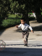 Look closely and you’ll see in the bottom left a sort of ball that the kid has just thrown. These balls were everywhere — dunno if they’re showing up back home yet or not, but when they get kicked or thrown, they expand to the size shown, then when they stop moving, they contract again into a little compact ball. Kids were having great fun with them everywhere.
