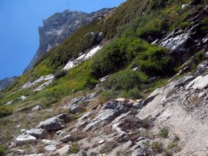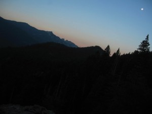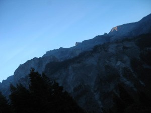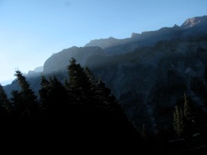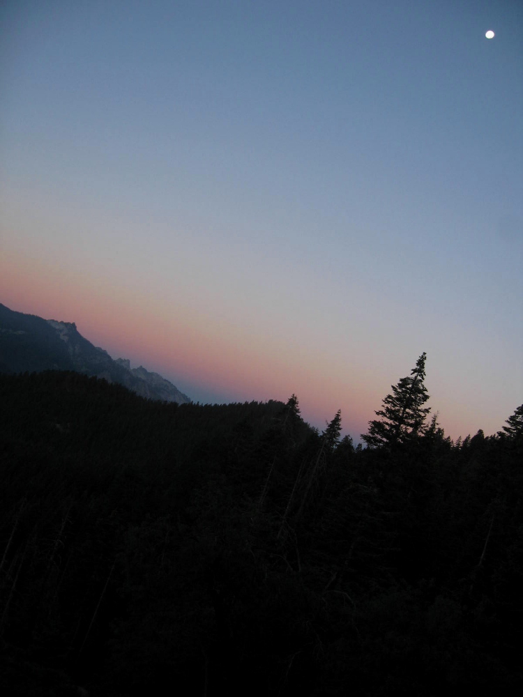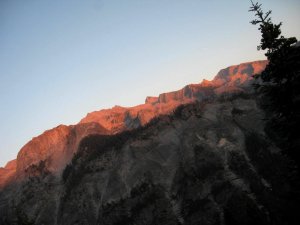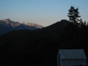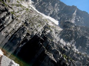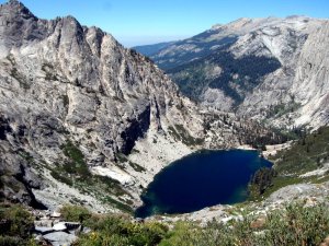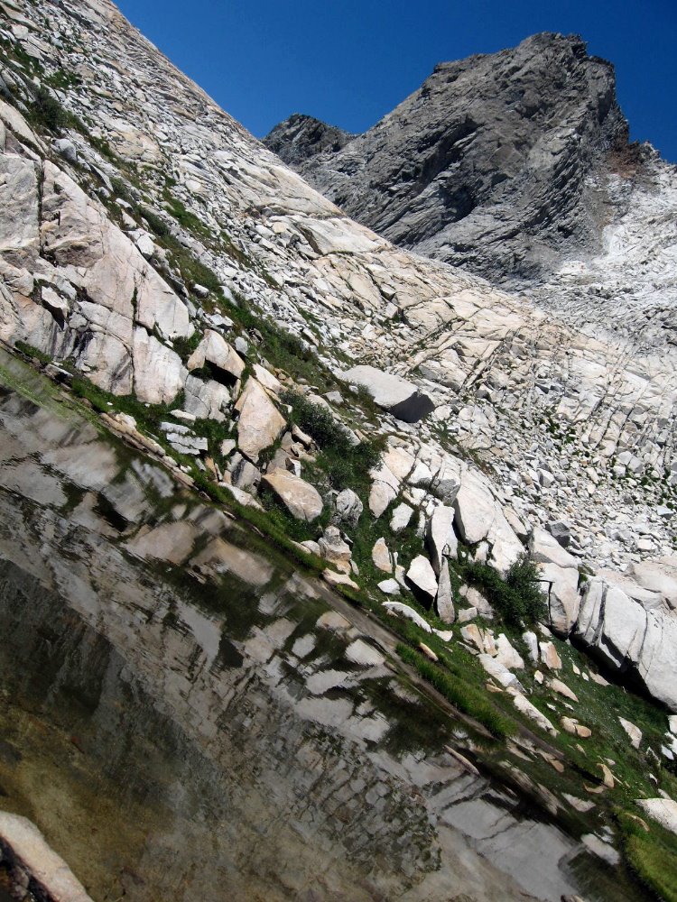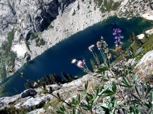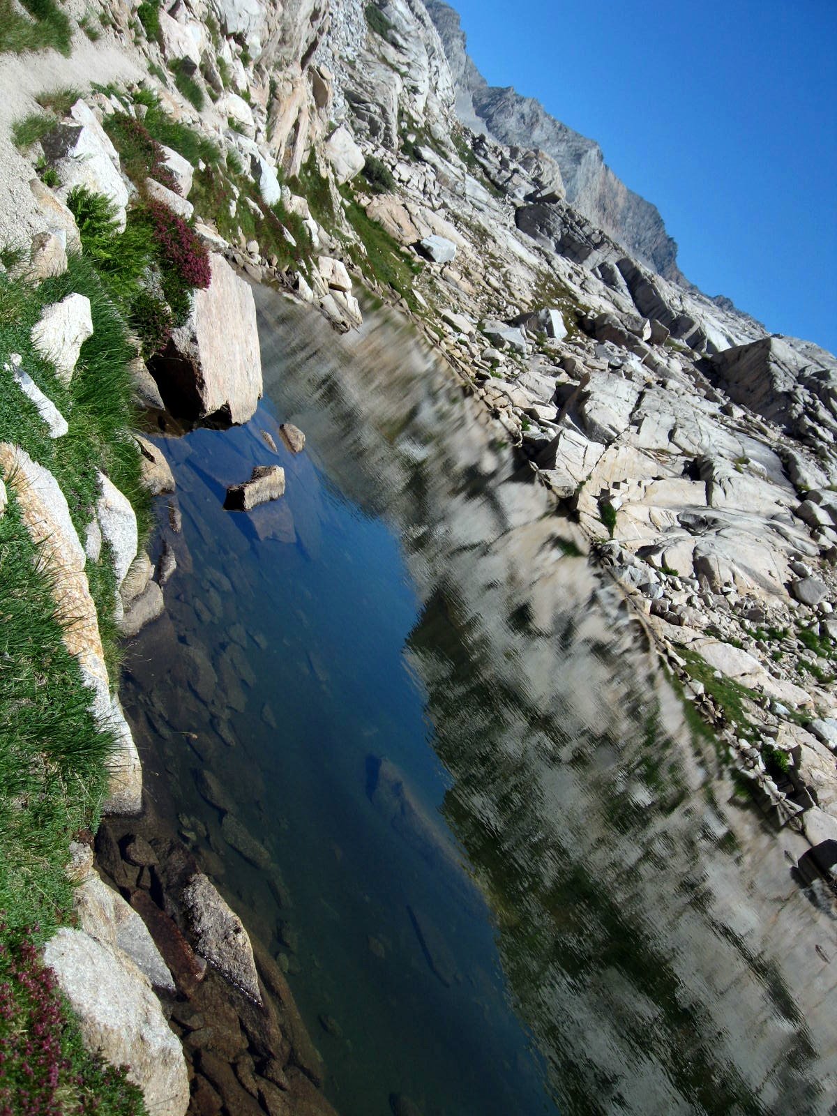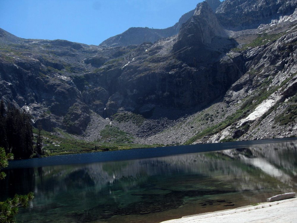 John, David & I took a few short swims in this glacial (almost literally — there are snow packs that are still melting, just next to it) lake.