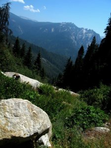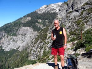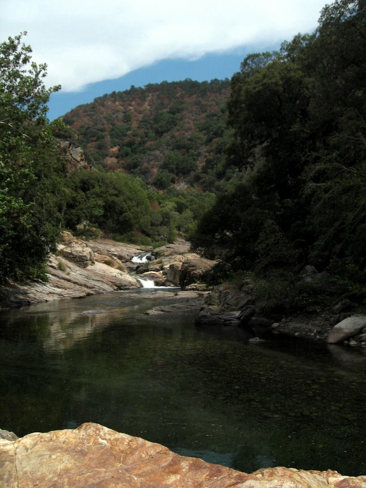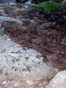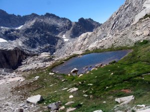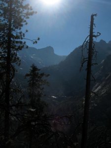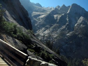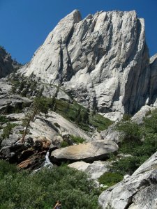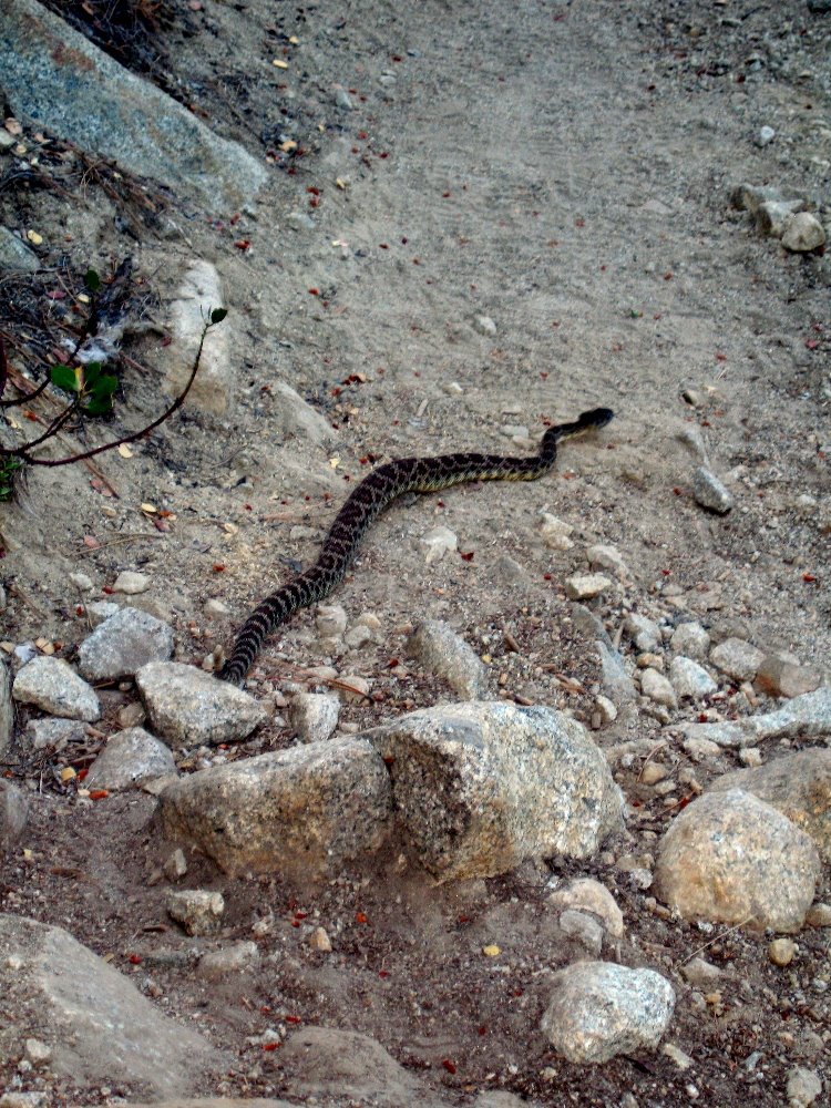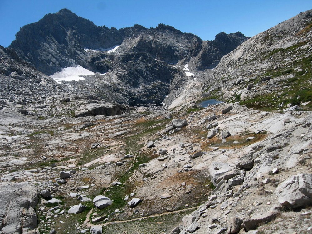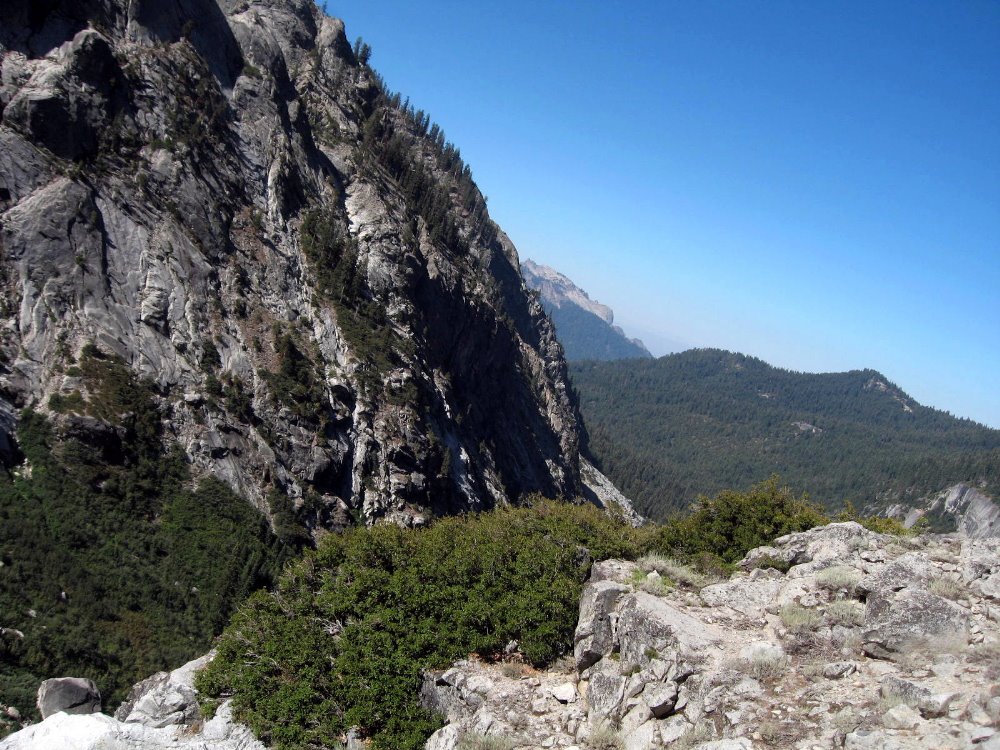 Having added that LA leg, I then signed on for a sojourn in Sequoia National Park, the less-visited and somewhat less-known southern neighbor to California’s blockbuster Yosemite National Park. My friends Howard and Gene, along with others whom I enjoyed meeting in the park, had arranged three out of six tent cabins at Bear Paw high sierra camp for a few nights, which dovetailed rather nicely with the wedding: I got myself up to Sequoia with help from Gene, we hiked the eleven miles up to Bear Paw, and spent two nights there before hiking the eleven miles back down. In between, I did an absolutely amazing 16-mile hike with 4500-foot elevation gain going up and then back down, up to Mt. Steward on the Great Western Divide (the crest of the Sierras). The higher alpine-tundra looking shots below and above are from that day’s hike, with high alpine lakes and so forth. The rest are generally shots of the Sierras in Sequoia, including a shot of me in front of one of the big, wide redwoods that give Sequoia its name. Believe it or not, I’ve actually sorted through these shots and excluded many from this entry — still and all, there are a lot of shots, but I hope you’ll agree they’re worth enjoying. 🙂