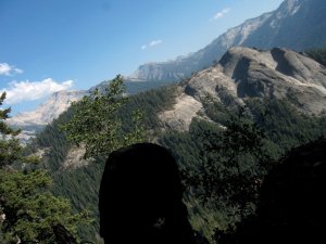 Above, I’m trying to convey the steepness of the rocks over which this water is falling. That’s basically a self-portrait of shadow, with the lower upper body much farther away because it’s a few hundred feet down a vertiginous drop.