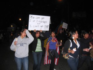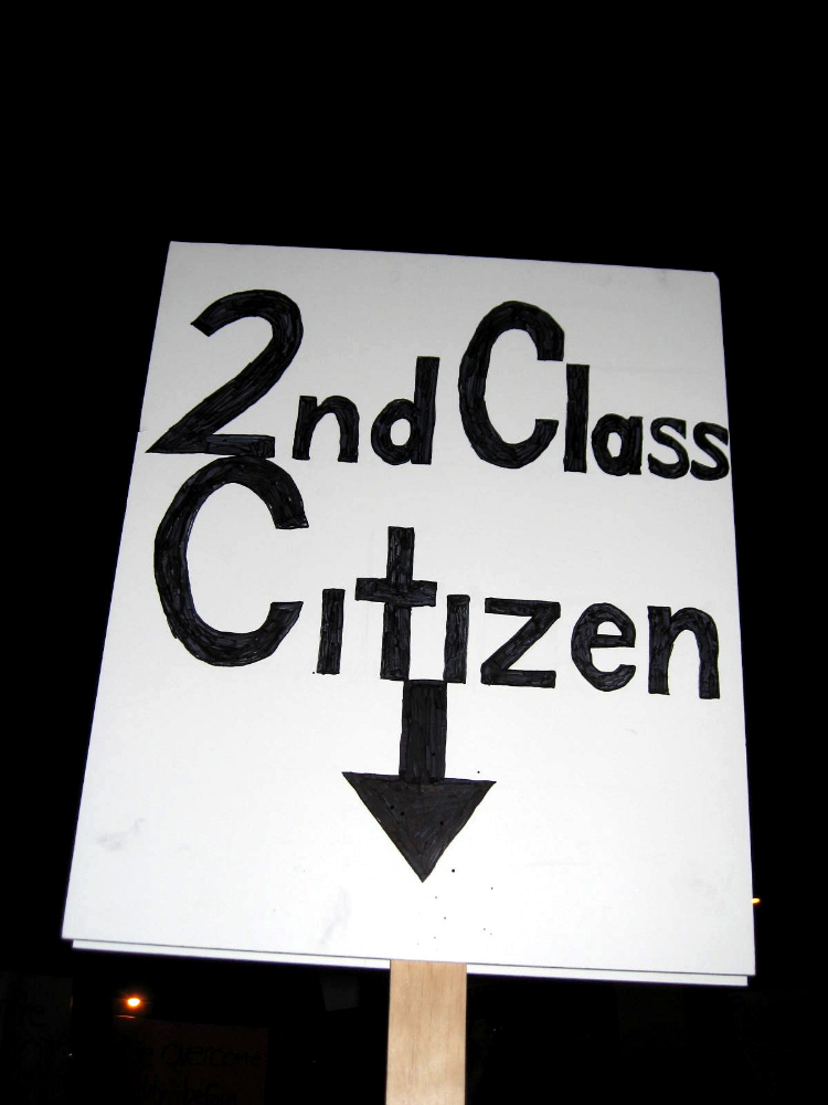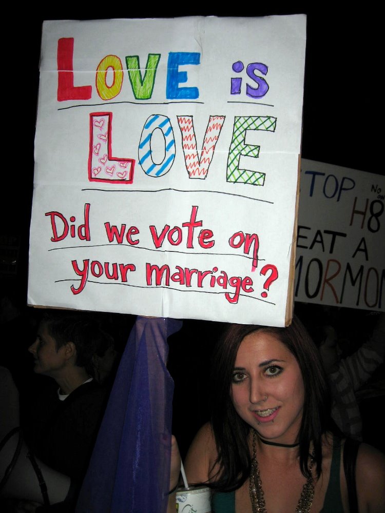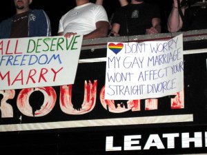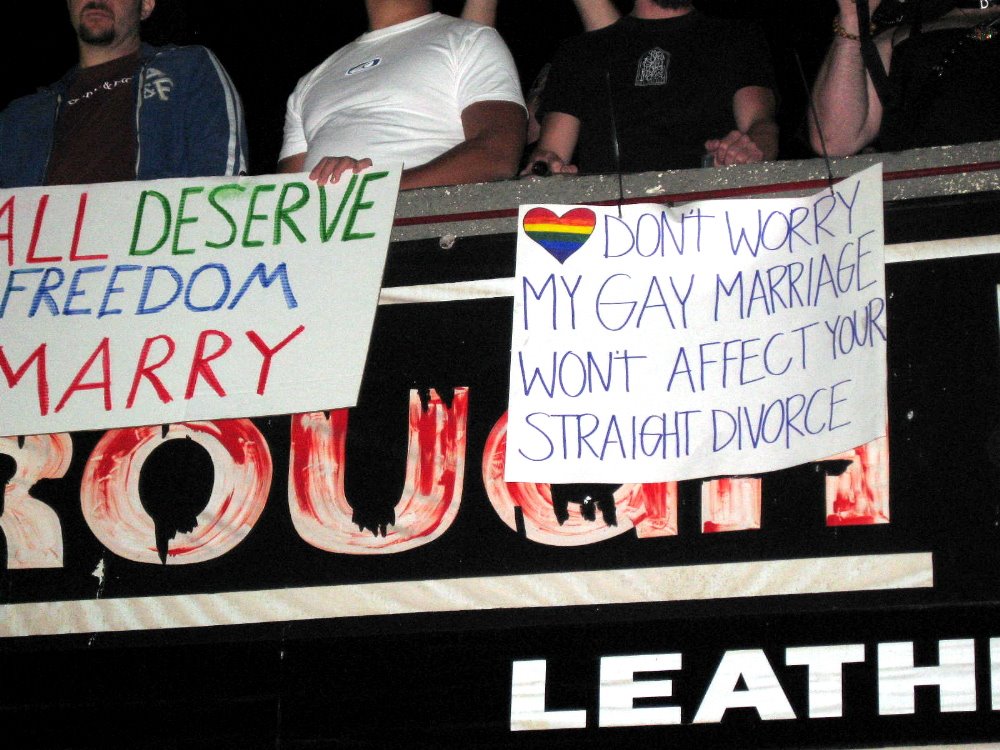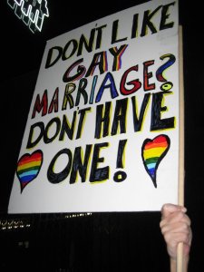 I’ve always been afraid to reach out as a gay person to my non-gay/lesbianfriends about my need for equal access to rights like life, liberty and the pursuit of happiness. (I’m not joking — Matthew Shepherd was killed not all that long ago for the crime of wanting to love the wrong person, a fear of which has certainly affected my ability to reach out to those I find attractive and interesting.) Some inner voice has always said my equal rights matter less than those of others, because it’s always been this way and after all, I could fake it if I wanted to. (About as well as one of my uncles and all those others who leave behind broken families and shattered dreams when they finally give up on trying to be what they, quite simply, cannot be.) But these voices rest on misbegotten notions that we queer folks can, or should, change who we are. I don’t necessarily plan to marry any time soon or think it’s right for everyone of whatever love interest, but I don’t see that my right to do so should be different from that of my brother, cousins and best friends who’ve been married for years – in some cases more than once.