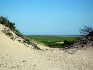 I like to say that Provincetown, a combination old-colonial fishing village, national seashore town and artsy high-concept tourist resort catering to a very wide range of tourists from whale-watching families to lesbian bikers to gay circuit boys and most things in between, is my single favorite spot on the US East Coast. The sand dunes and tidal mudflats of the national seashore are crisscrossed by bicycle and foot paths for endless exploration, and there are reliably inspiring views of clouds, water, grass, sand and sky mirroring and reflecting each other in all weather conditions, from highest flood tide to lowest ebb tide. All this, great restaurants, excellent art galleries and an endless broad array of interesting and curious people strolling down Commerce Street from dawn til well after dusk — all with the town and environs packed into a manageably small space — you can imagine why I love it so much. Why did I let eleven years lapse between my last visit and the two fleeting days I permitted myself here on my way to Star Island?