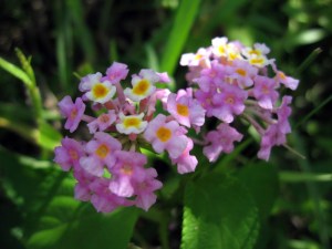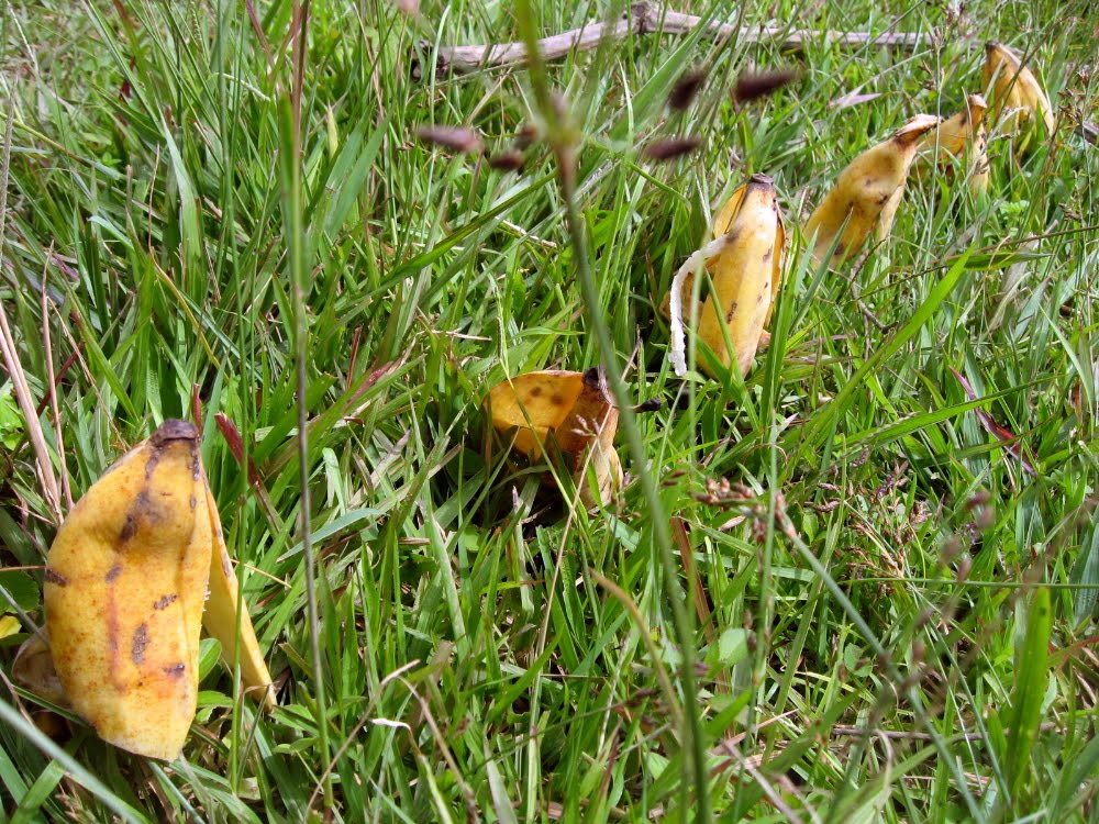 That’s Phil and Fiona making art: in honor of Phil’s and my great fondness for environmental art (he’s a longtime fan of Richard Long, I of Andy Goldsworthy), we turned one hike into an ongoing art experiment: see walking banana peels below, and flower art, further down…