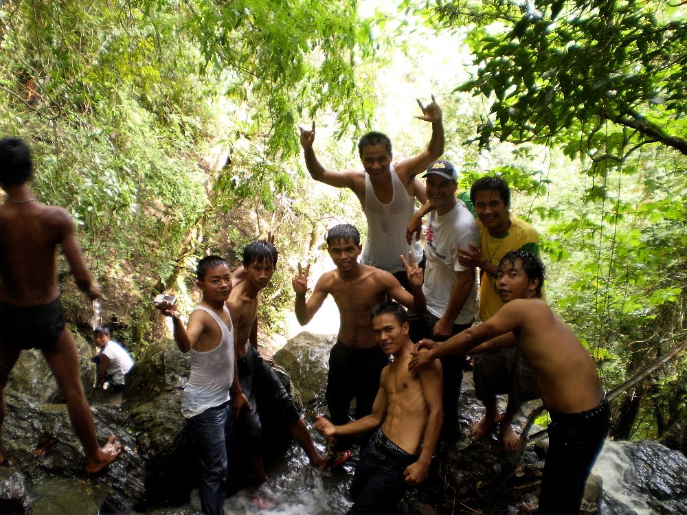 …that’s me in the ball cap, on the right. They all wanted the pic – it wasn’t my idea, honest! And oh by the way, immeiately behind us is about a 15-meter waterfall.