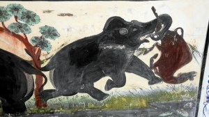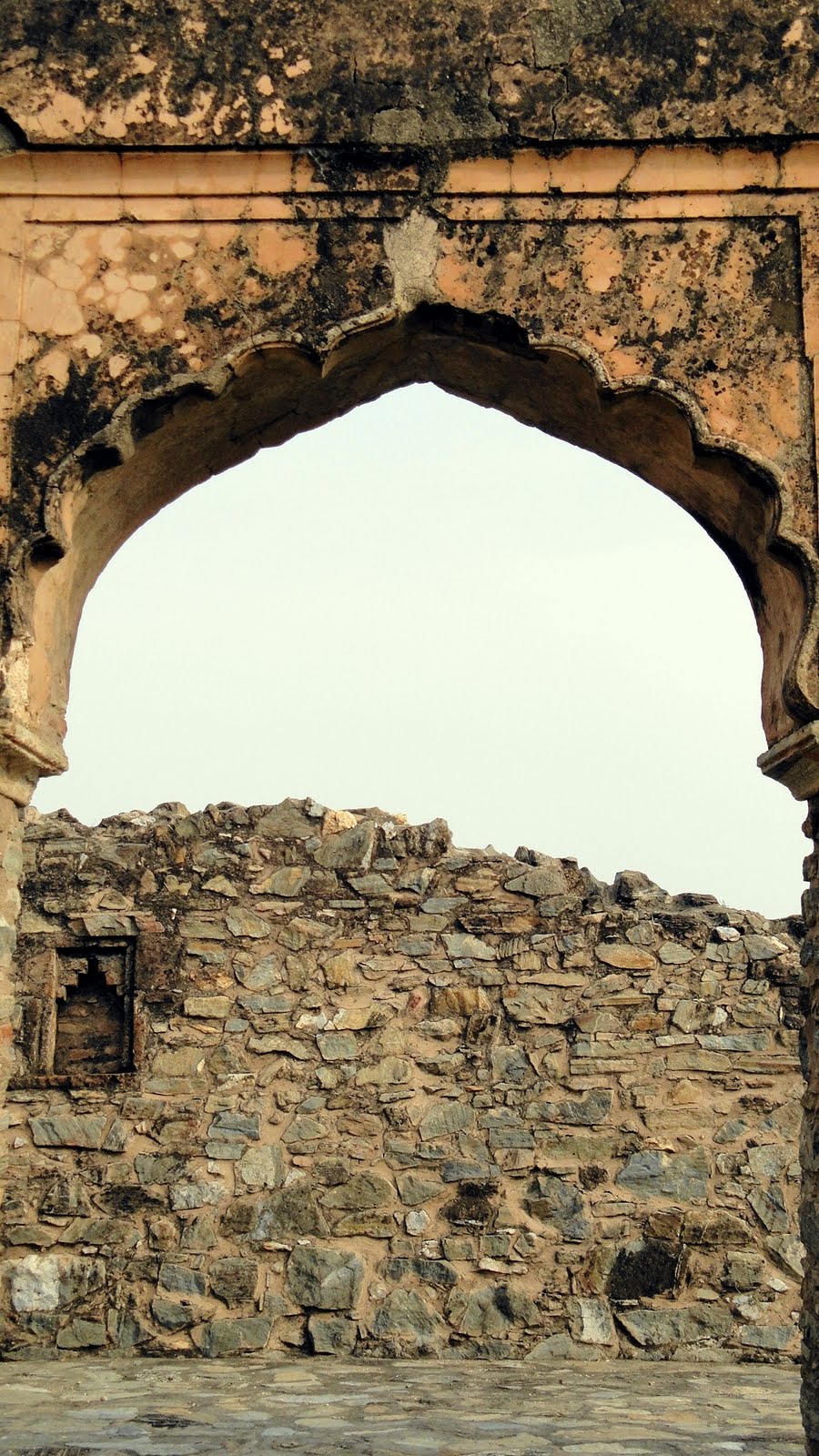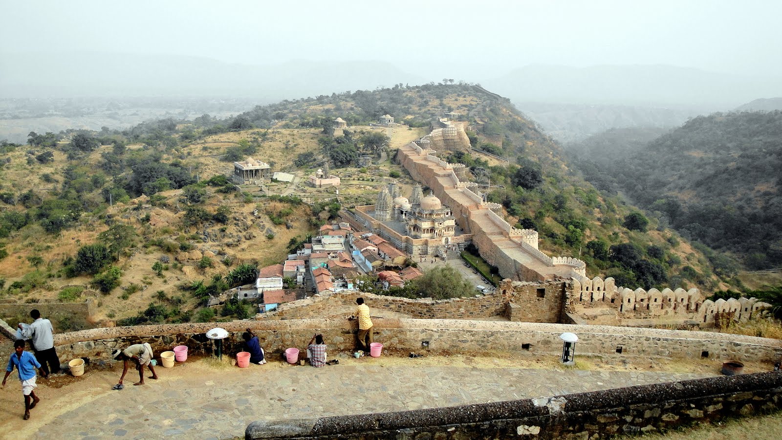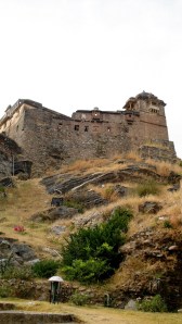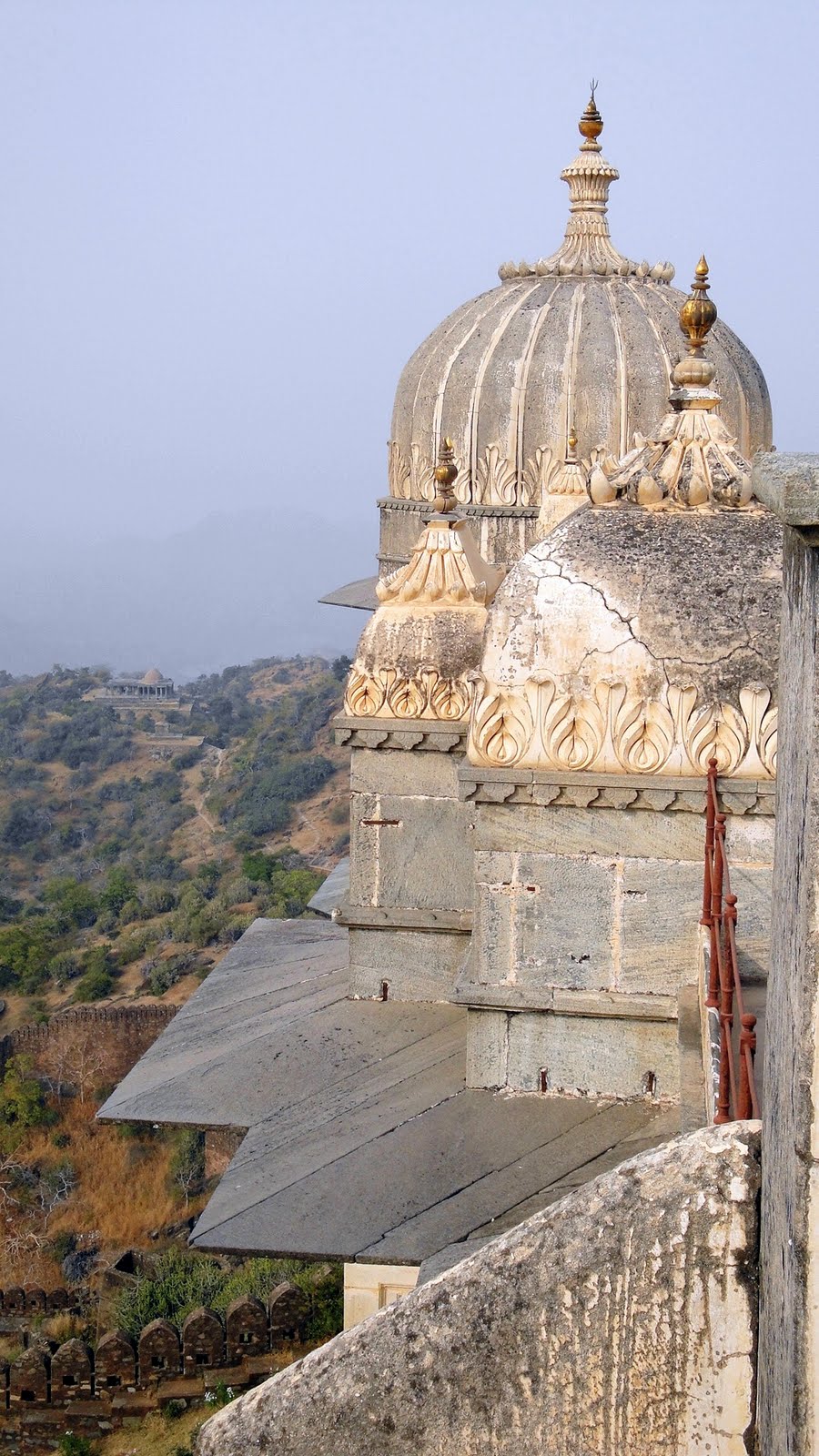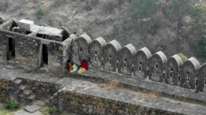 Kumbalh Garh (fort at Kumbalh is what it means) sits high up above rows of ramparts in the hills north of Udaipur. It’s not one of the top forts of Rajasthan, but it’s certainly quite impressive. There’s a story in why we saw it: as we departed Jodhpur for Udaipur in the morning, Gene mentioned to our driver the temples Rankapur, which we were to see that day according to the schedule. He hadn’t checked the schedule, our driver, so was unaware of Ranakpar and what are supposed to be stupendous white-marble Jain temples that are pretty much tops in their category for Rajasthan. As we drove ever further and saw signs that Udaipur was ever closer, we asked again about Ranakpur and got unclear answers. Finally, certain that we were past Ranakpur and nearly to Udaipur, with dusk in the foreseeable future (one doesn’t drive most roads after dark in the Indian countryside), we asked again and finally got the car turned around…only to be brought to Kumbalhgarh, which we decided must have been our consolation prize: backtracking to Ranakpur, by then, would have meant arriving far too late in Udaipur, so we got a lovely and atmospheric fort instead. Oh well: next time for Ranakpur.