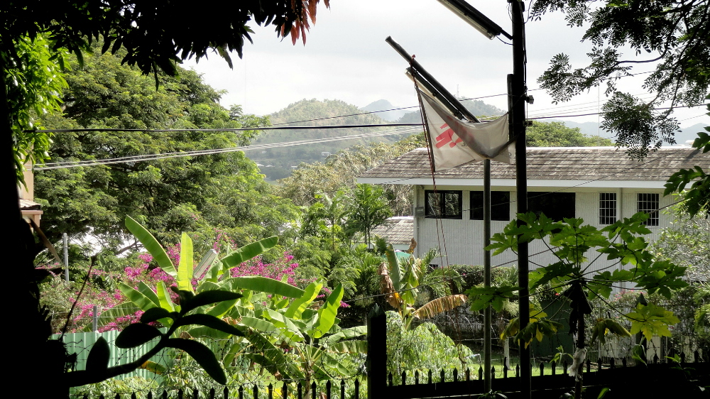 …below: literally what I see when I look out my window each morning. Our compound is shady and lovely – sometimes I miss the light, but I never miss the heat the sun brings with it. We’re in a hilly, green section of town about 10 or 15 minutes’ drive from downtown and the harbor.