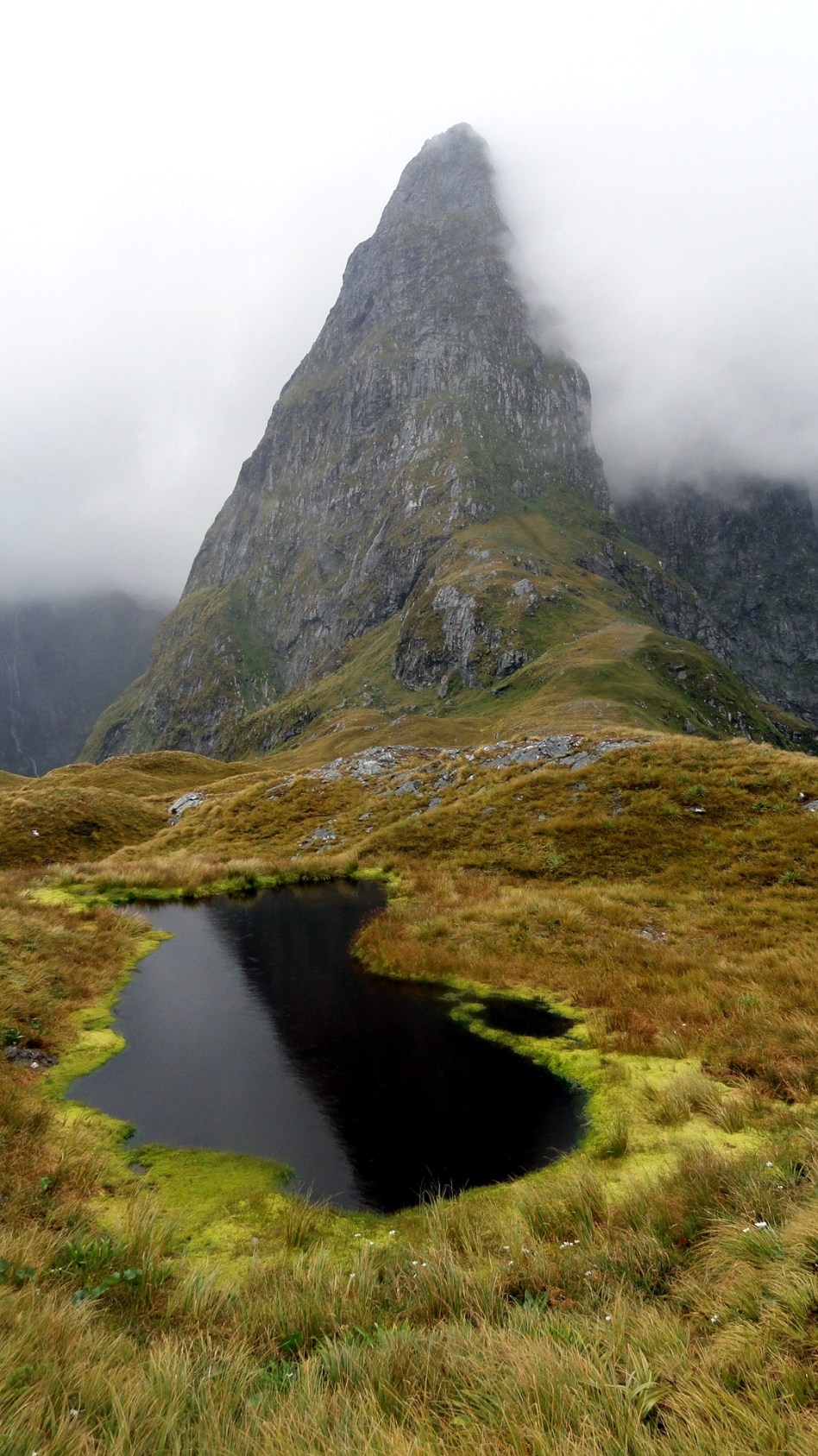 Many Muddy Misty Magnificent Miles on the Milford Track » McKinnon Pass Pond & Peak