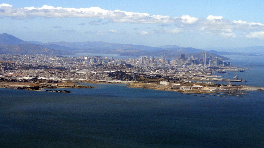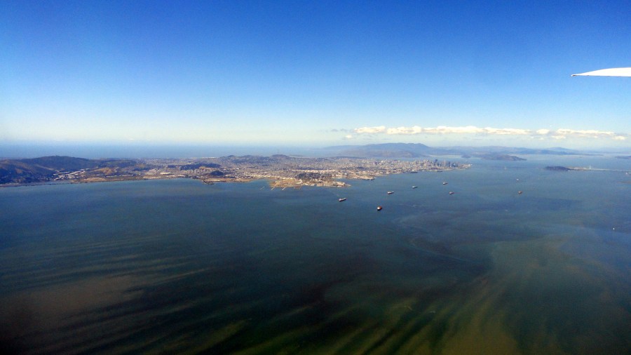 If you haven’t been to the San Francisco Bay Area yourself, and if you wonder why I’m always so happy to get home to it; or why visitors to SF and the bay area so often rave about it — a good place to start is to take in the photo just above. I’m still working my way through photos I took last year, before I headed over to Bangui, where I’ve been now for more than two months. I shot all of the photos in this post during a take-off from SFO en route to EWR last year, in May — but what I’m posting are just photos from the bay area and up til the time we reached the still snow-covered Sierra Nevadas. Since it was nearly a year ago, and this year hasn’t seen as much snow — just remember: it’s last year! Enjoy!