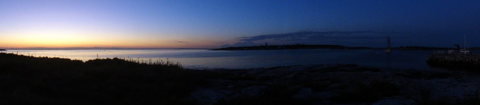 An explanation: the bridge passes over Badger Island (home of the houses with the floats hanging from them) then on to Kittery, a town in Maine. Which is famous for blueberries, and has a lovely Mexican restaurant which serves, as you see, colorful blueberry margaritas where I passed time until my boat – yes, that very same boat seen waiting to pass under the bridge – left for the island. I just loved the colors! And the taste was fine, too…)