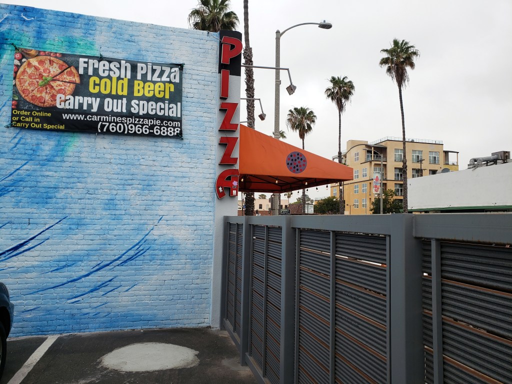 As noted, the “coasting” series isn’t going chronologically! Herewith the entry from the southernmost point of my current Pacific-coast explorations: Oceanside. This town is known for a few things: its pier, above; and its proximity to large marine base, which means a large population of young and hungry individuals, hence a very high prevalence of pizza joints in town … see just a few random examples encountered on my walks, below 🙂