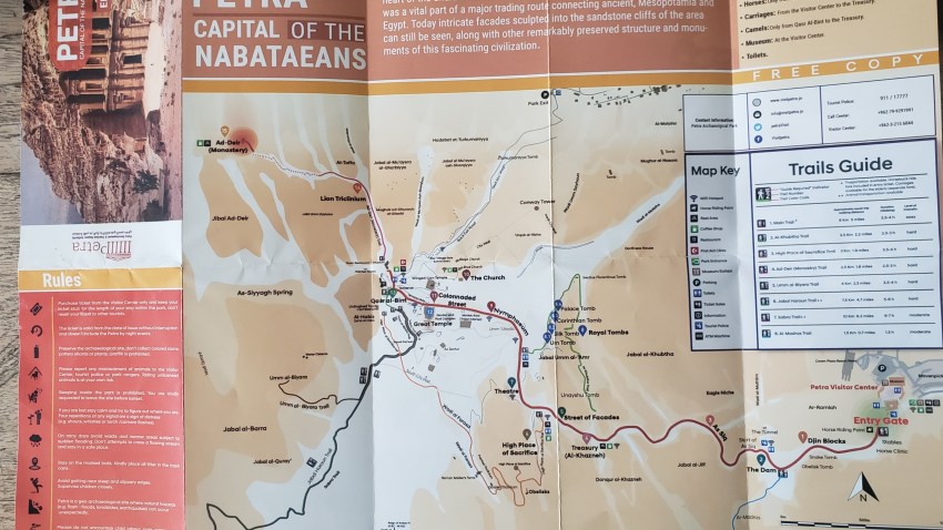 Further down, I’m posting a photo I took this morning of the official map you get upon entry. The main red path indicated on the map, which is basically at ground level from Entry Gate to Qasr Al Bint, is said to be 4km long.