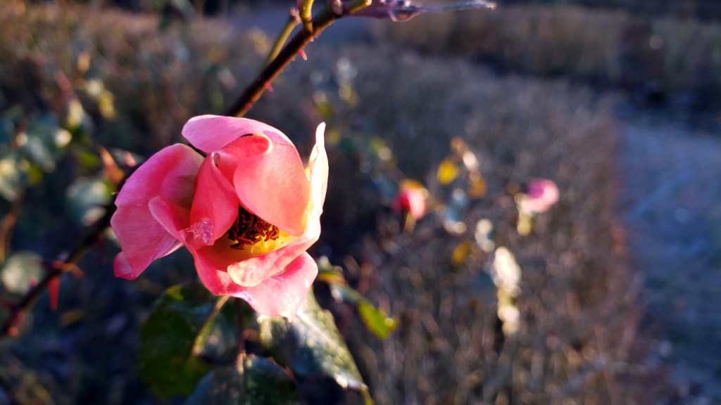 Look closely and you’ll see a bit of ice on this frozen rose, from a dawn walk in the Vondelpark Rose garden at the end of December. I’d been saving these up to post during the greyest moments of February, then when I flew back from two weeks in Nigeria recently, I noticed all the daffodils and narcissus have started blooming. So we’ll have more flower photos popping up soon!