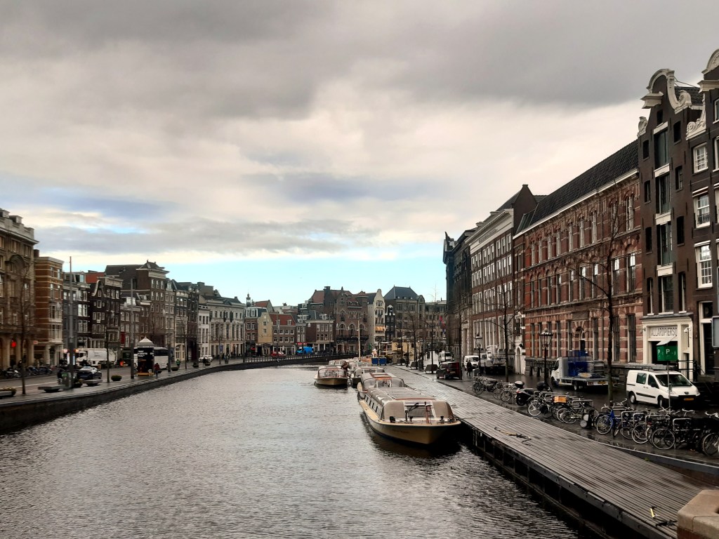 Some explanations may be in order for beloved members of my viewing community who see these posts only as email alerts or on your phones, where the categories & tags I always apply to posts are less visible to you: I was traveling around the US a bit, from the 23rd of March until last Sunday, the 3rd of April. I spent some time with family in Pittsburgh & Oberlin (apologies to Oberlin friends whom I didn’t connect with during my 24 hours in town), then out to California to touch base. If your viewing style for the blog doesn’t show you the categories & tags, then for example you’d think yesterday’s beautiful tulip photo was taken here in Amsterdam – logical, for many reasons – but in fact both that and the earlier orchid photos were taken at Pittsburgh’s lovely Phipps Conservatory, whose spring flower show is a lovely taste of spring in a place where spring does in fact arrive later than it seems to here in A’dam. It’ll get even more confusing the next week or two for anyone who doesn’t select the option to see the full blog view, because I still have lovely flower photos from the Phipps trip, maybe still one or two from California, and tomorrow I’m going on a walk through the blooming tulip fields you’ve seen on postcards and tourist sites from the Netherlands. It’s a safe bet I’ll take even more tulip photos then, so you might consider checking the full site for the category and tag, if you’re curious what you’re seeing. That said: this photo is clearly and undisputedly Amsterdam, on a rainy morning as I headed to work. I will be showing you both NL and US photos in the weeks ahead :-).