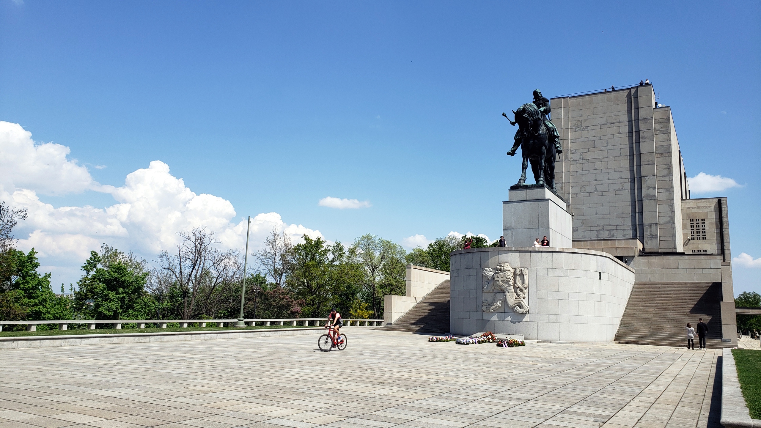 So that Sunday – Marathon Sunday for Prague – also happened to be what folks variously call VE Day (Victory in Europe, i.e. the day WWII finally ended with German surrender in Europe) or Liberation Day. I’d been in Amsterdam for the 5th, which here is Liberation Day, and then got to see the wreaths and camera crews still there after the Czech president was up here at the National Monument for a speech. This monument and building tower over the city on the other side of the river from the Castle. Many more photos to come in a special post dedicated to this really quite remarkable place. 🙂