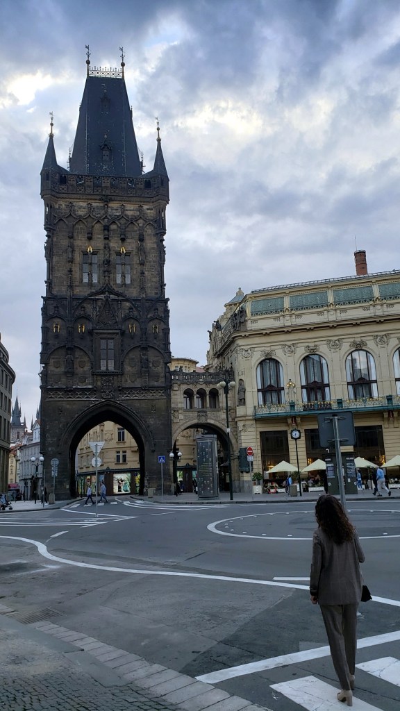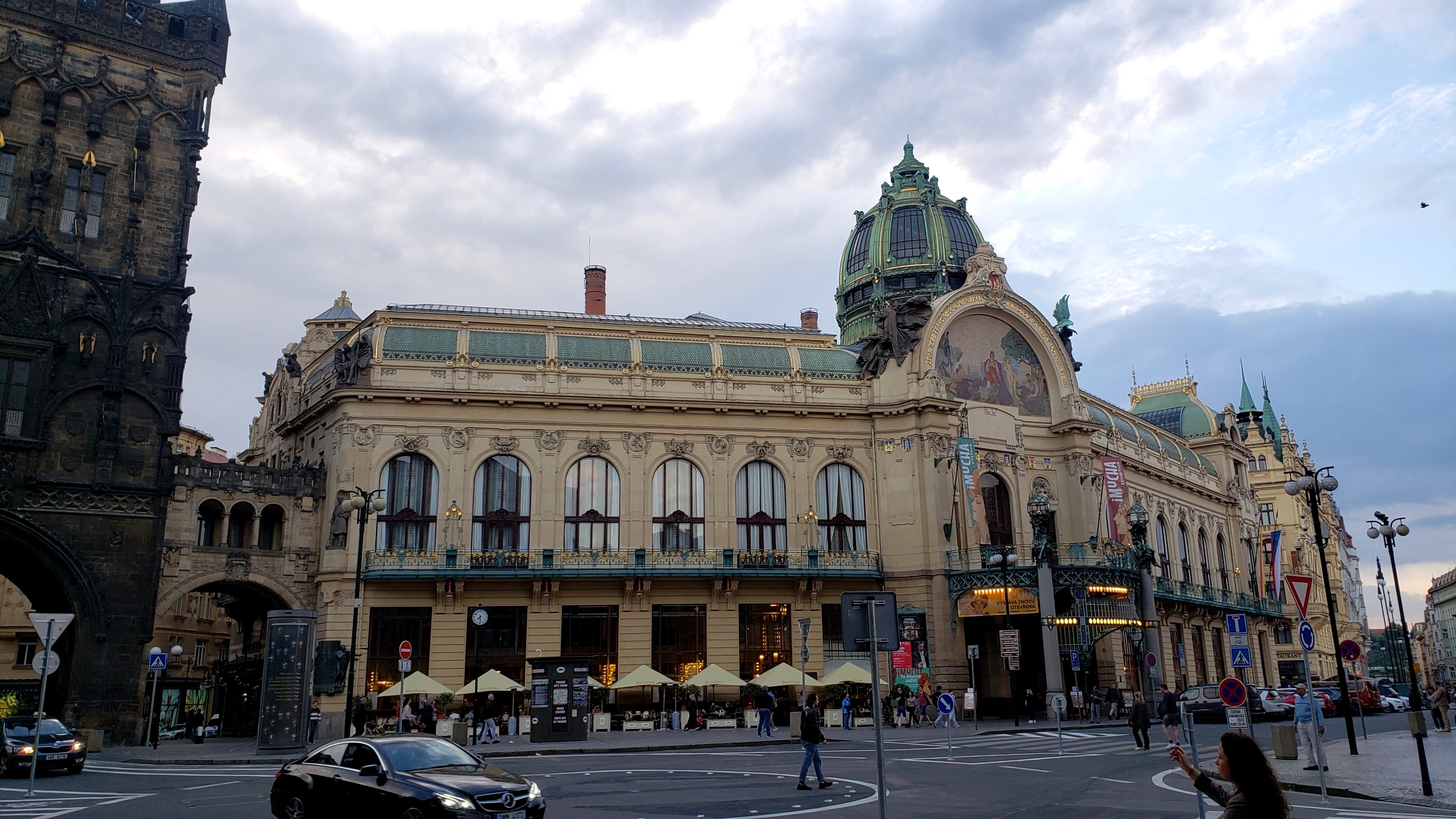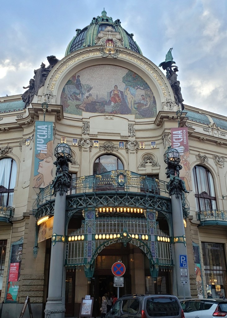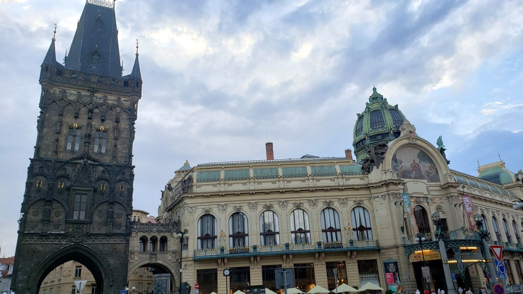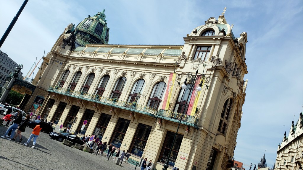 This is Municipal House, on Republic Square, the border between Old Town (witness the gatehouse to the left in the photo above) and the new New Town, witness the Art Deco Style of this building. All these photos were taken on or adjacent to Republic Square, named I believe because the Czechoslovakian declaration of Independence (from the crumbling Habsburg Empire, in October 2018) was signed in this very building.