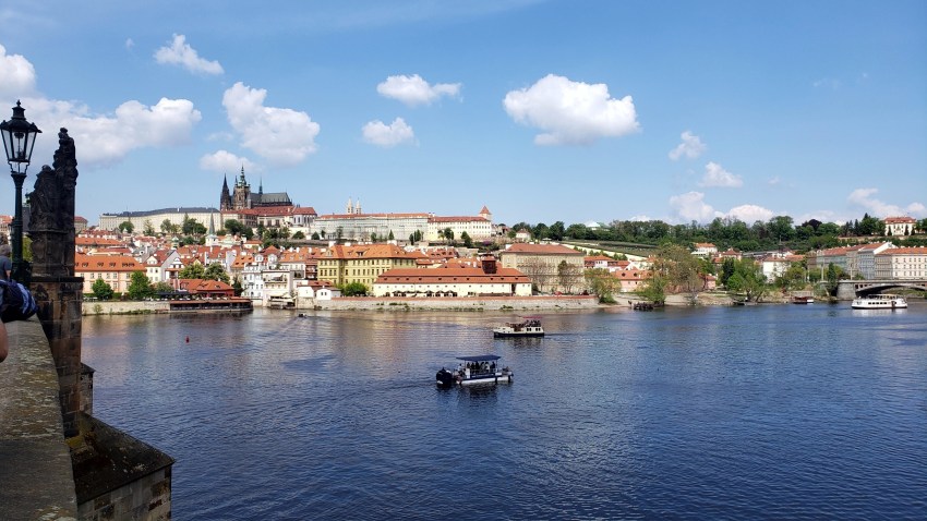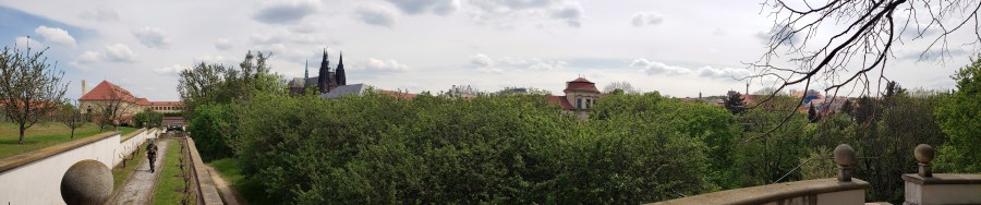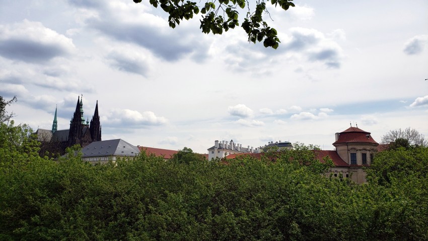 Prague Castle is visible from many parts of the city, including along most of the lovely eastern riverbank’s walking paths. There are a few different palaces inside “the castle,” including one which I believe is called “the castle” because I guess it’s the home or office of the head of state (?) – but in general the whole compound is called the castle and includes many buildings and churches and a LOT of history. the most prominent feature are the spires of St Vitus Cathedra, visible in the photo just above and in many, many other photos here.
