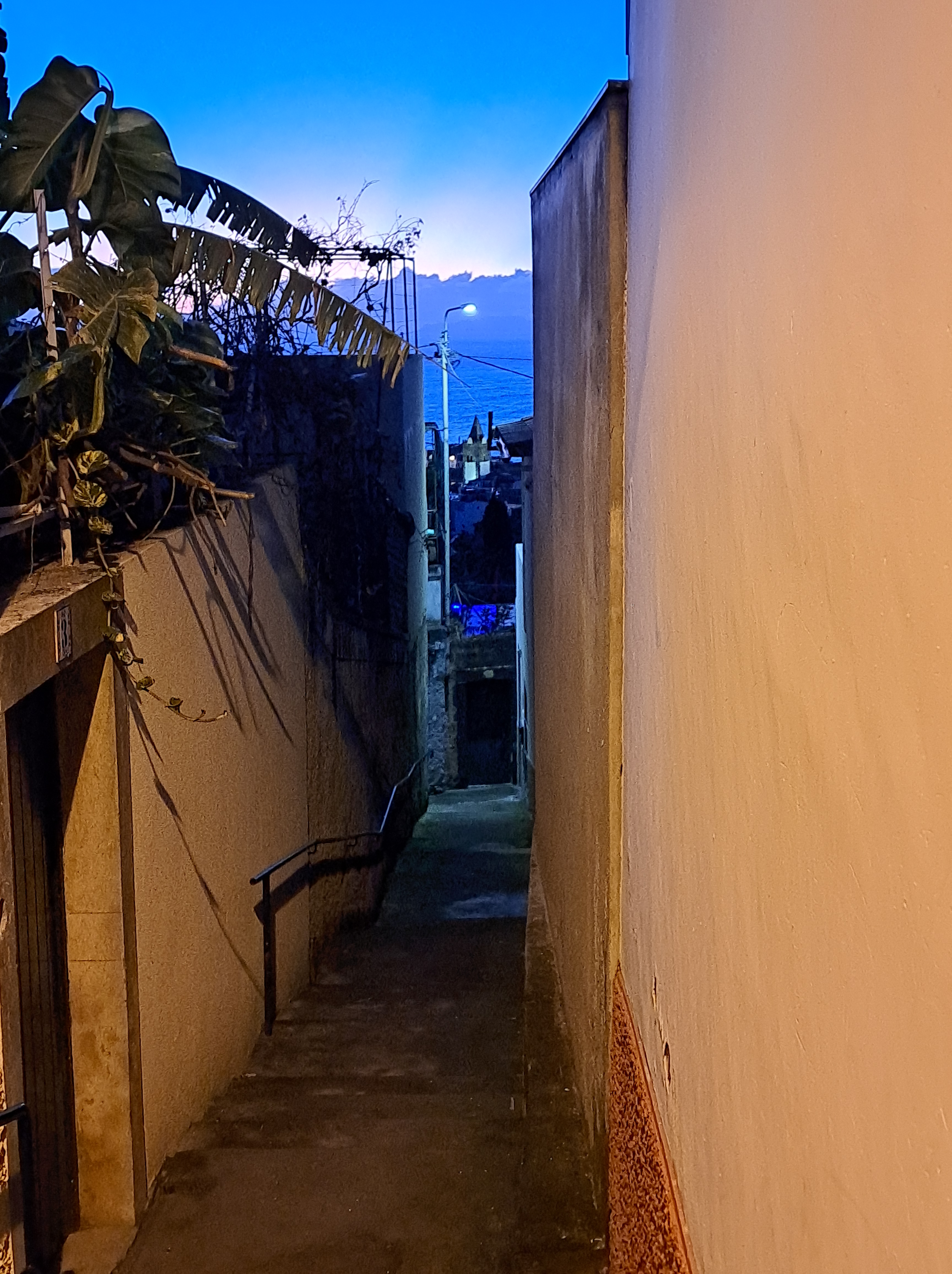 Above and below, a group of photos from a pre-dawn & sunrise walk my first morning on Madeira last Monday. The boat shown taking to sea above is the ferry to Porto Santo, the second inhabited island that’s part of the Madeiran archipelago. The combination of few full-sun days and limited ferry departures meant I didn’t make it over on this visit, but would certainly hope to if I visit again :-).