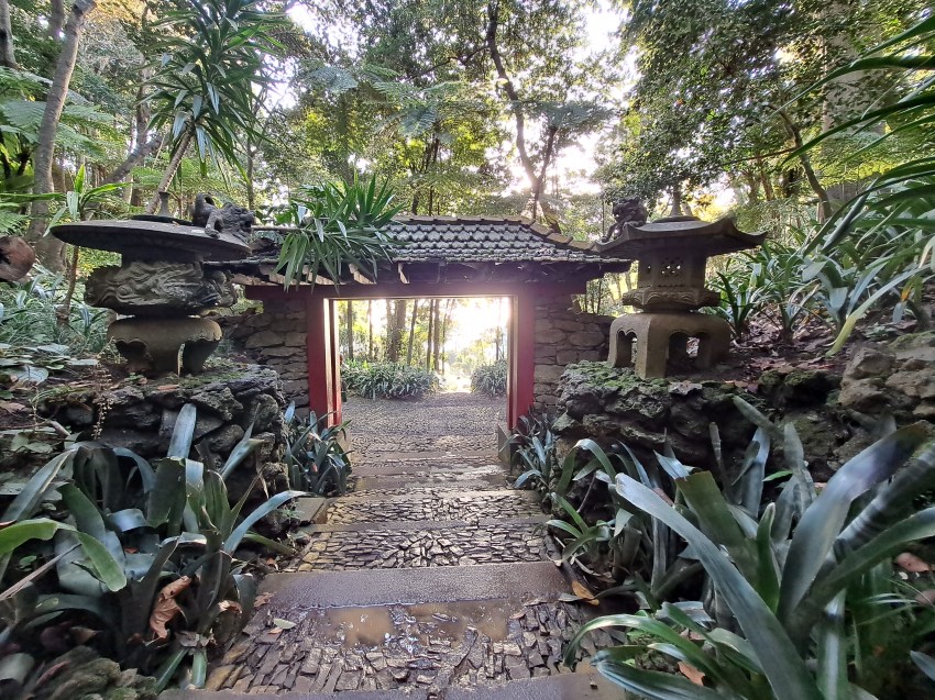 Welcome to a visual tour of Monte Palace Tropical Garden, Madeira. As these first photos show you, it’s a remarkable place with a tremendous mix of art, architecture and vegetation from many parts of the world. Seeing the old original hotel juxtaposed against classic Japanese torii-style temple architecture (as in one of these photos above) , I initially wanted to be snooty and think things like “what a hodge podge this place is.” Oh, for at least a minute or two, how my inner intellectual purist side SO wanted to go snarky critic 😊.