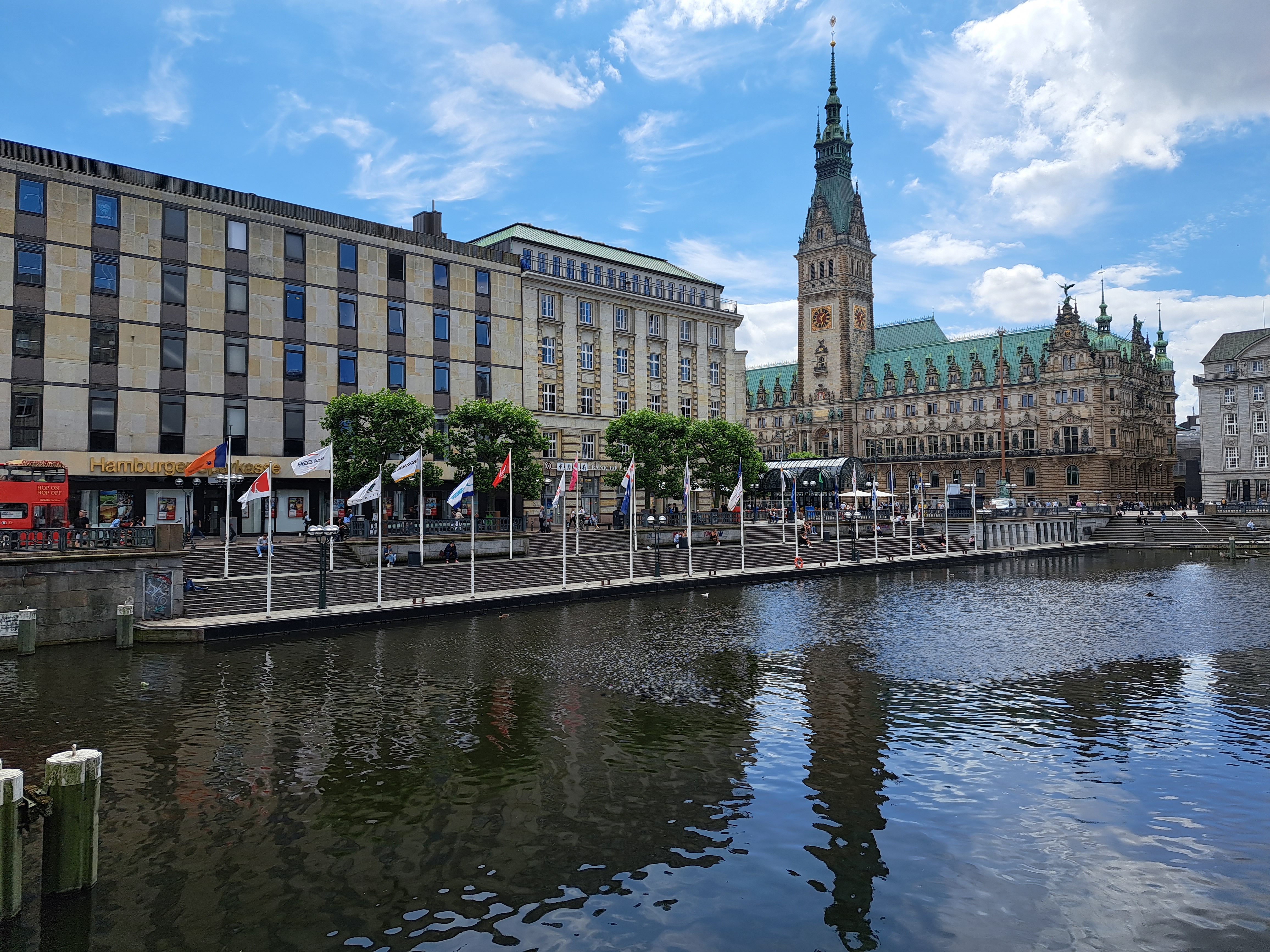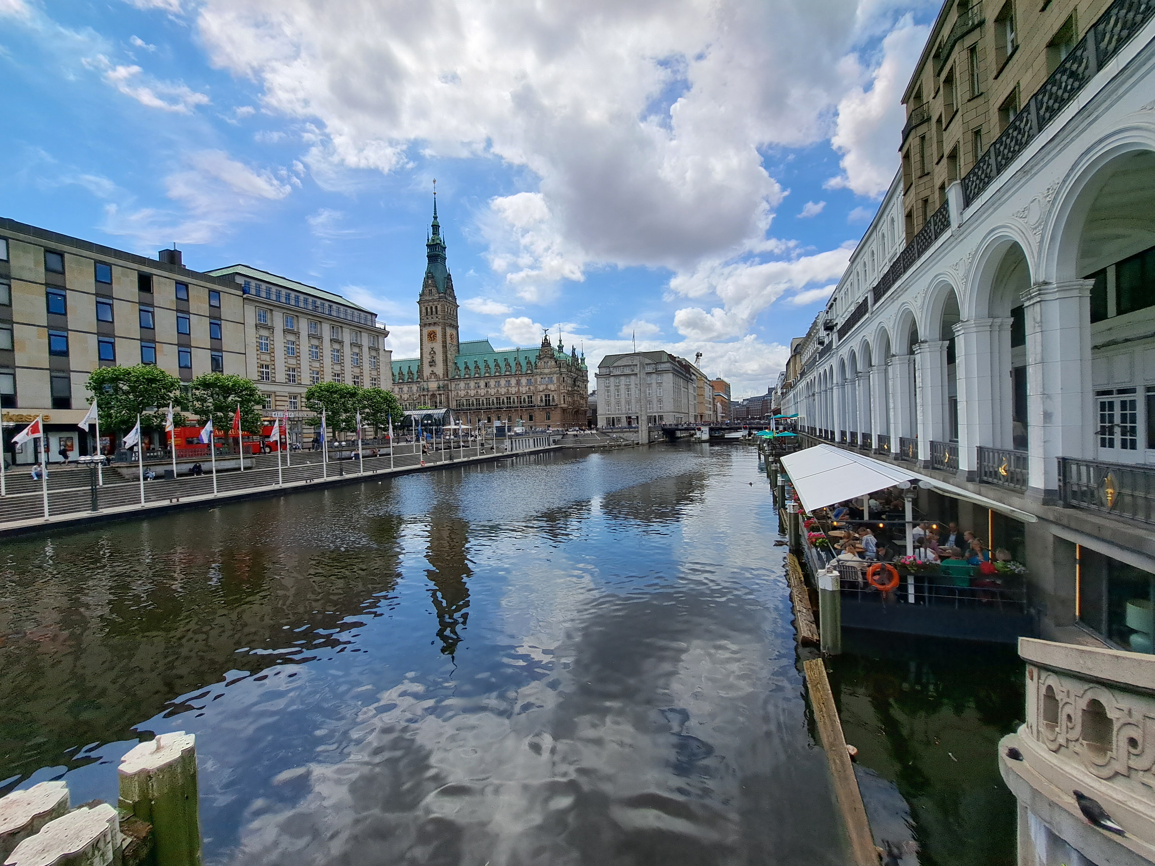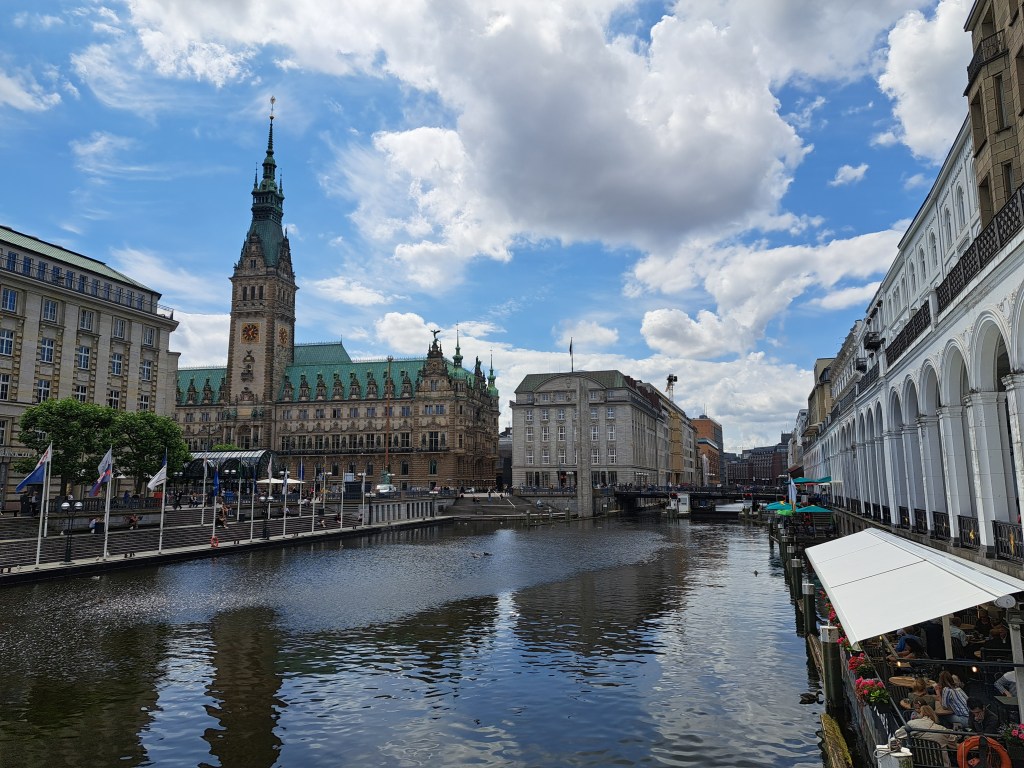 Turns out that once you start looking for them, you’ll find urban canals and rivers in many cities other than Amsterdam, including this lovely little waterway that connects Hamburg’s Alster to it’s busily-trafficked shipping river, the Elbe, en route flowing past its dramatic city hall (seen here).
