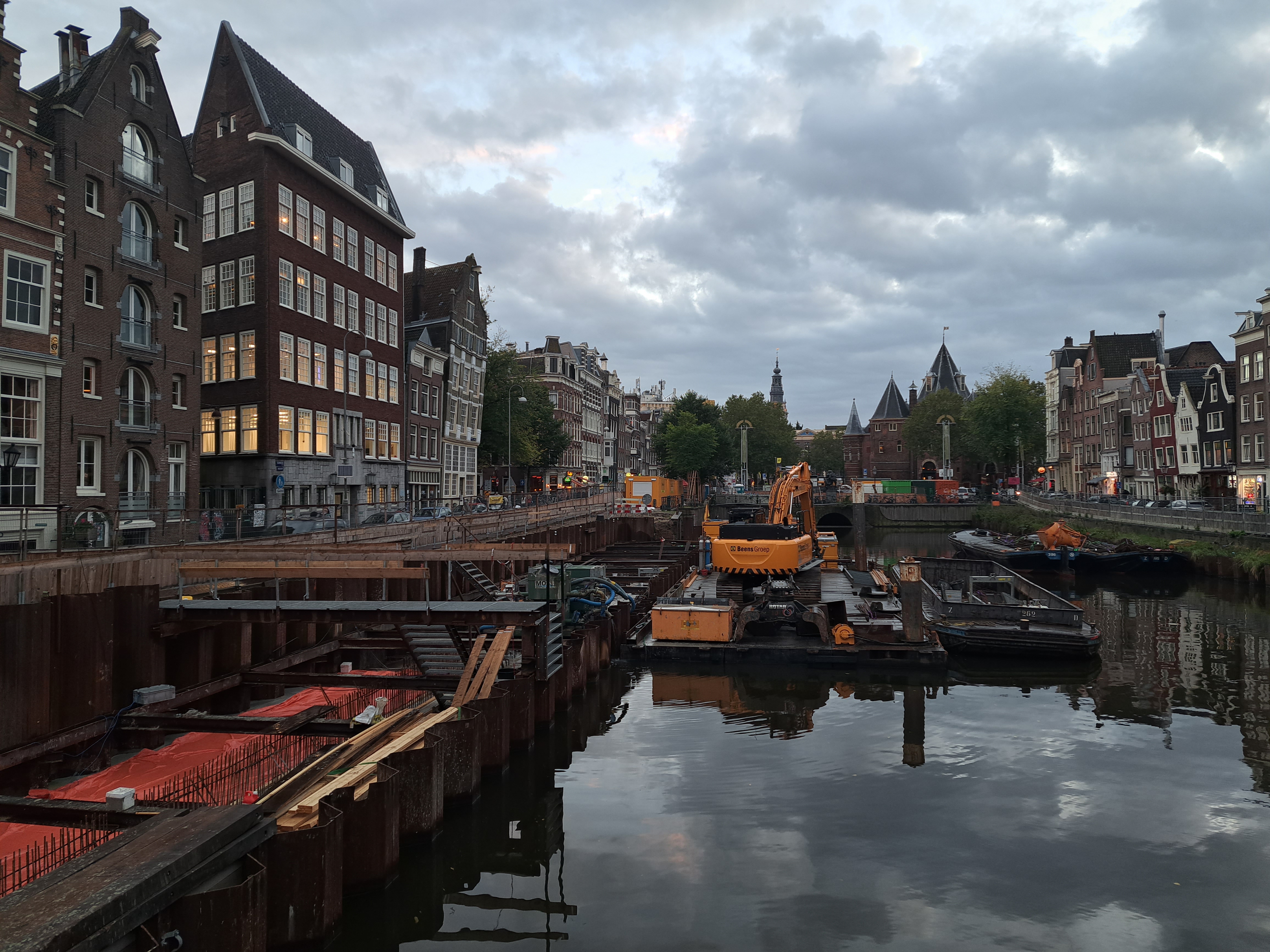 Point 1: I realized to my chagrin that I skipped this series in the last number cycle, so we’re catching up; Point 2: The oldest canals have been collapsing bit by bit, so the city of A’dam has a massive multi-year budget to slowly shore them up, since the center city’s canals and streets are so old that they were never built for the sheer volume of tourists, buses, cars, etc that load the roads alongside them now – this being an example of the repairs on one canal in the heart of the old city.