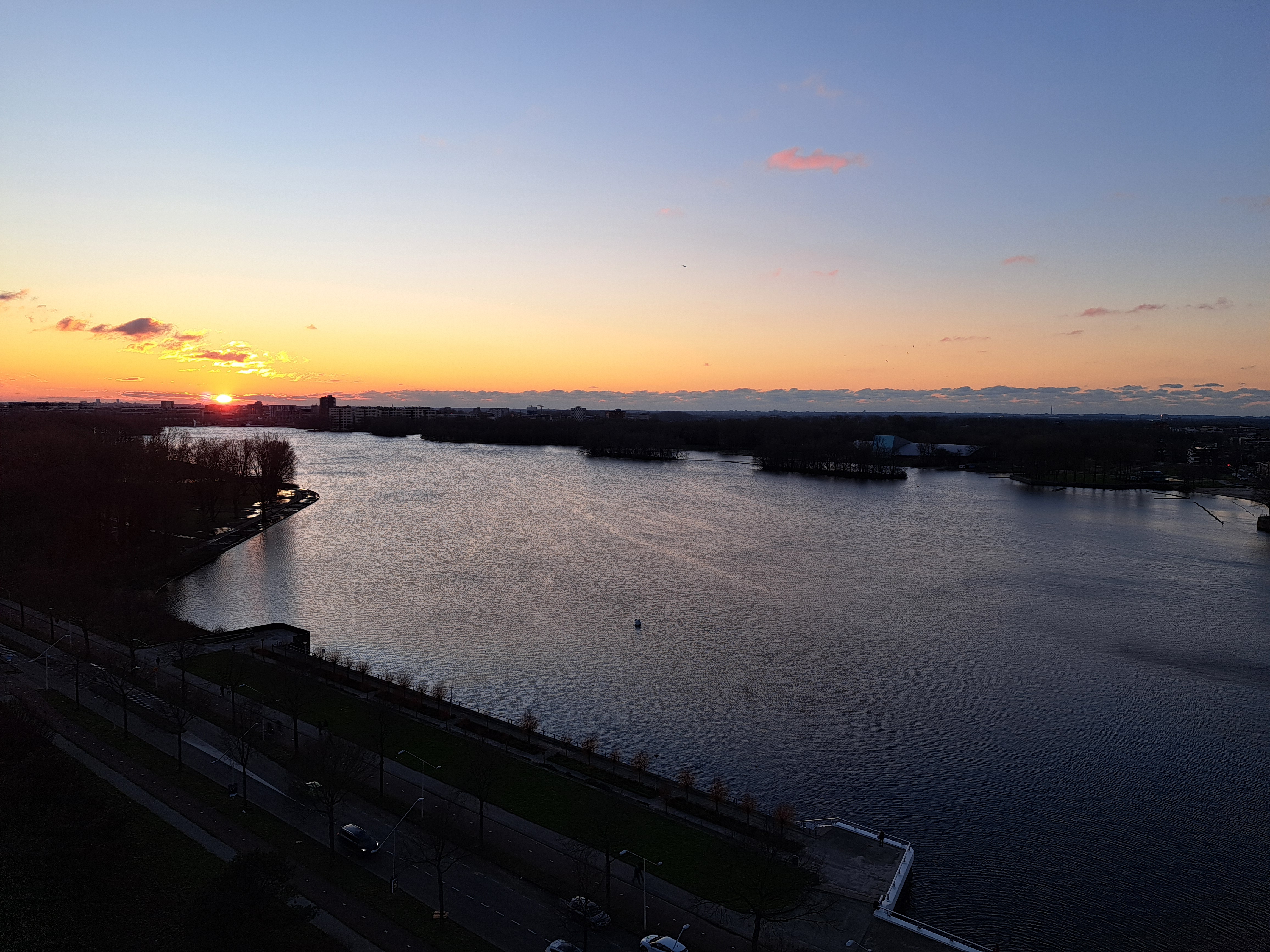 Three important things happened today in my world: 1) The sun actually shone for most of the afternoon; 2) Clouds were sufficiently absent long enough for the sun to be still shining as it sank beneath the horizon (below, at 4:41:08 according to my camera — above was at 4:25:39); and, most important in my little world, the earth has rotated enough now that it actually shines in the windows on my balcony for a few short minutes at the end of its time above our horizon here. (For a comparison sunset further north and west plus several hours later, check this past post from early August: my windows face mostly north, a decent amount of west, with only one little sliver of southwest.) Note that it might have shone in a bit for a couple days now, but with clouds omnipresent nearly full-time since early October (I do not exaggerate), wouldn’t know. So this is just me sending a bonus post to let the sun feel appreciated and welcomed.