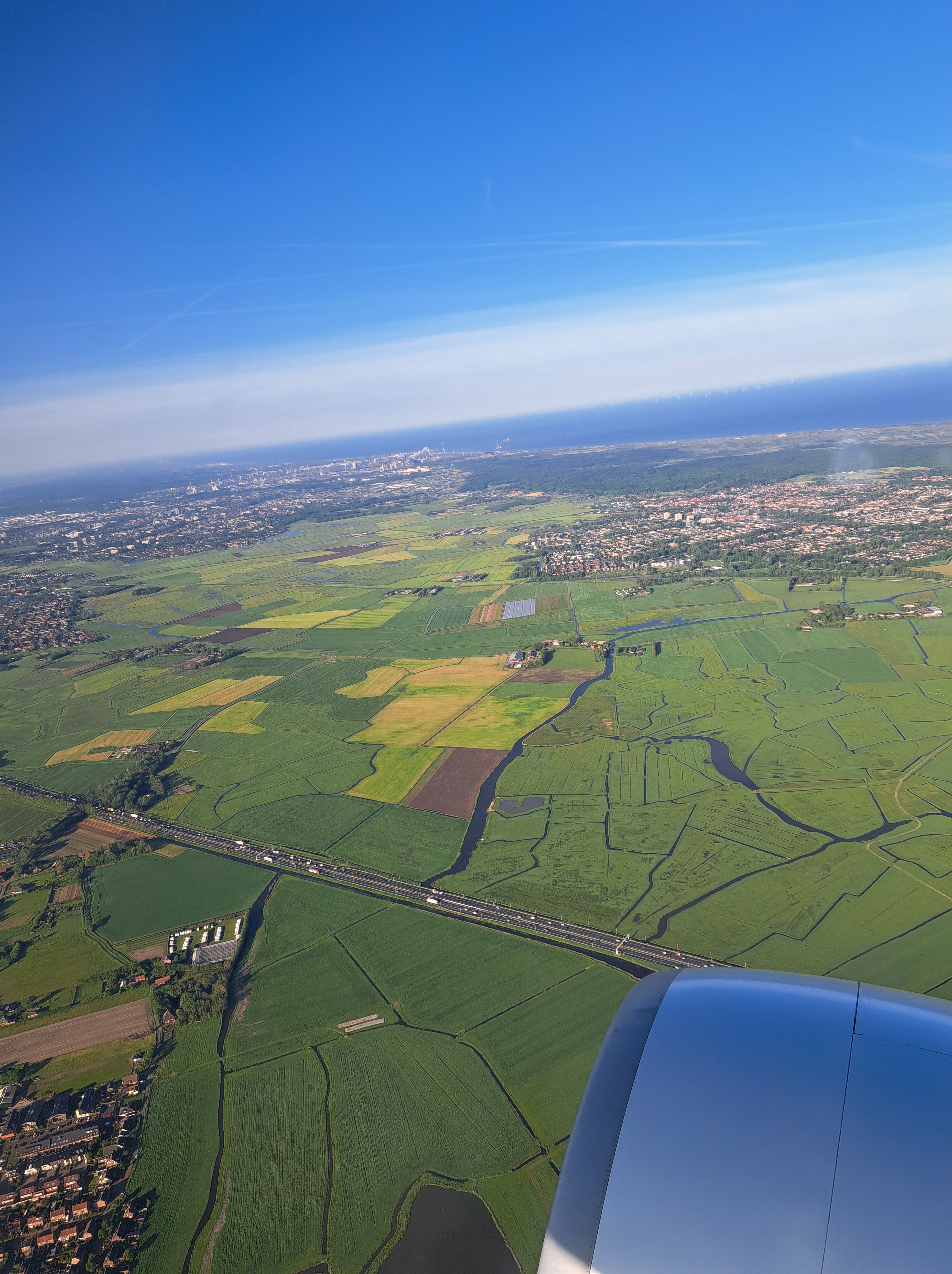 That’s the coast of North Holland at the top, with the port of Ijmuiden (“mouth of the Ij,” which is the industrial-sized canal that runs from Amsterdam directly over to the North Sea) in the top-left quadrant and the lovely town of Castricum to the right. All as seen on Tuesday morning as our plane oriented itself towards the runway at Schiphol.