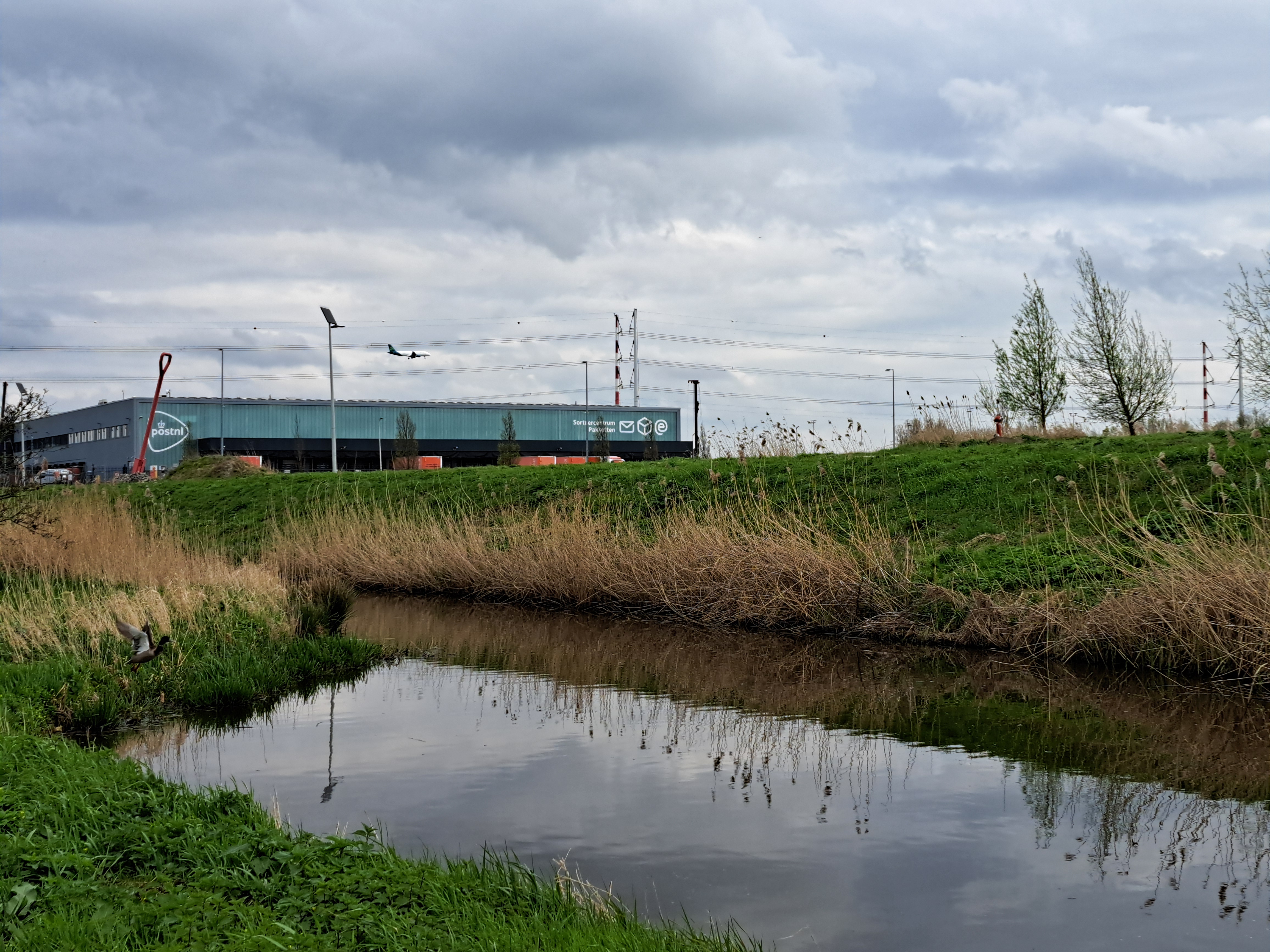 The airplane is not the only thing coming in for a landing in this image captured in the countryside between Haarlem and Amsterdam in early April.