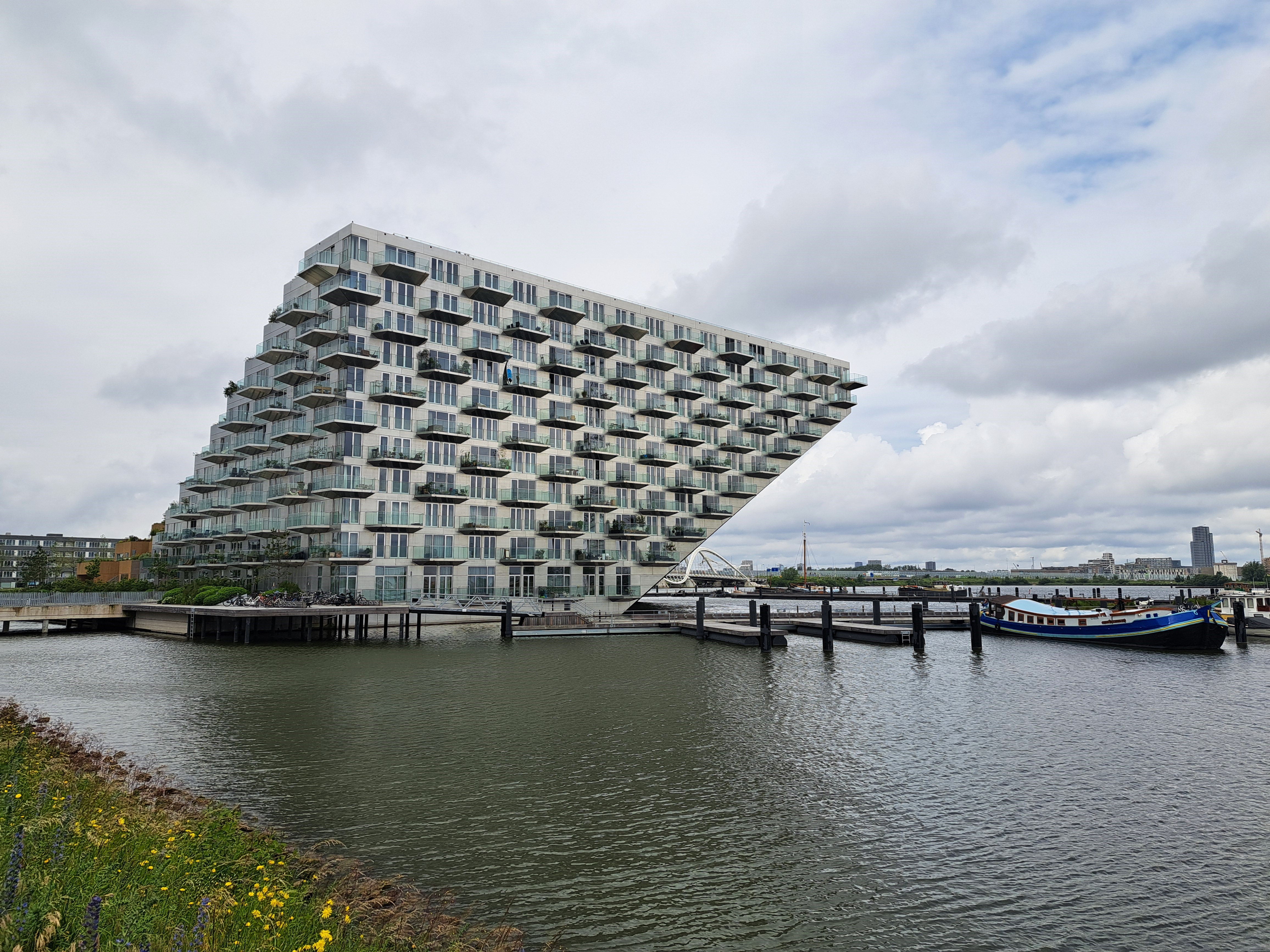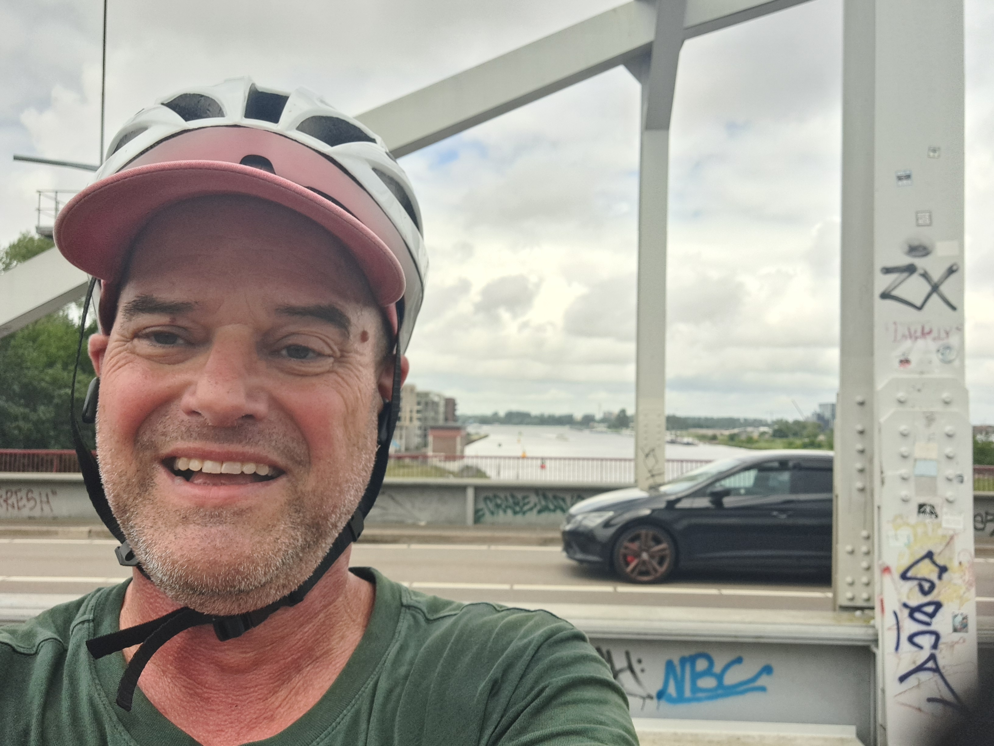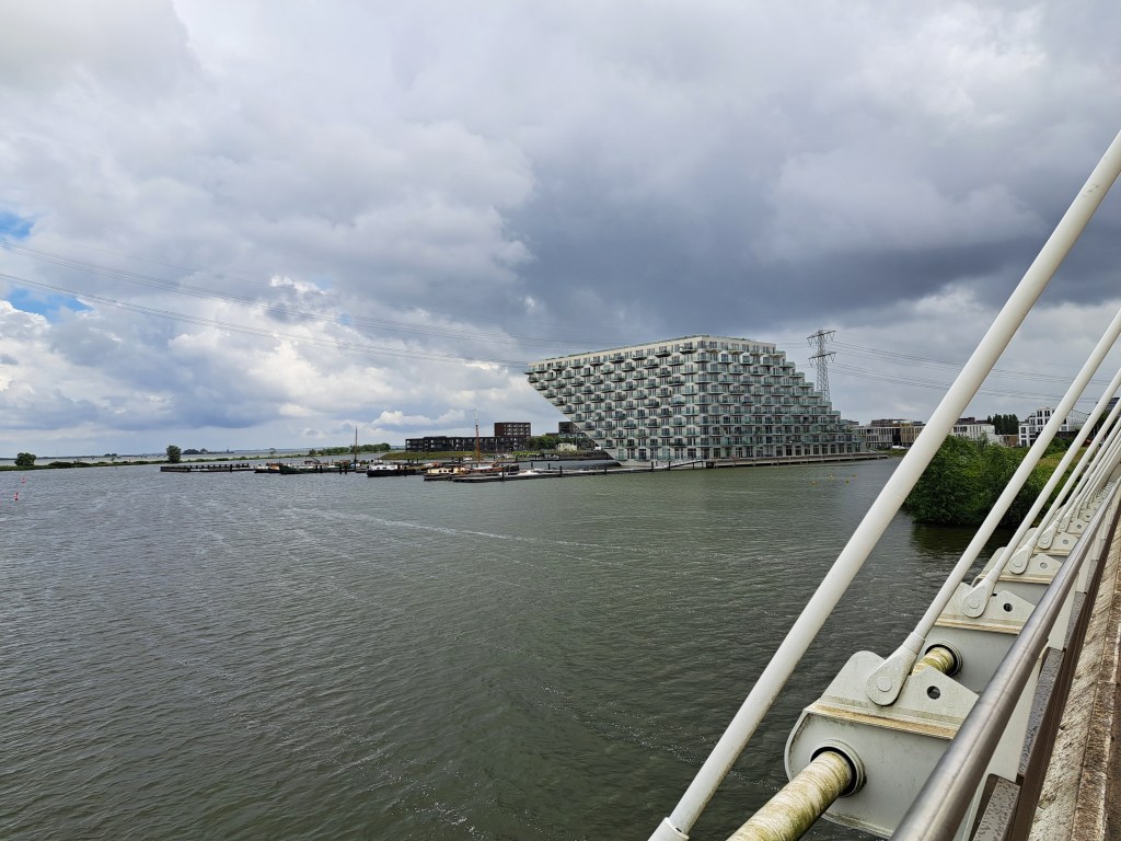 I first took the photo below while biking across the bridge en route to Muiderslot, which you’ve now seen twice before. I figured I was focusing on the island farther out in what I (and you, depending how much you read this text) now know is the Markermeer and not in fact a bay…I was pondering whether I could call it “coasting” or not :-). But then I got all the way across the bridge and saw up closer that this building is an island unto itself. You’re seeing it from two sides — the bridge you see below right and above center is the same bridge. Me further down is a different bridge that I’m just adding so you see I wear a helmet and am thus considered weird, here.
