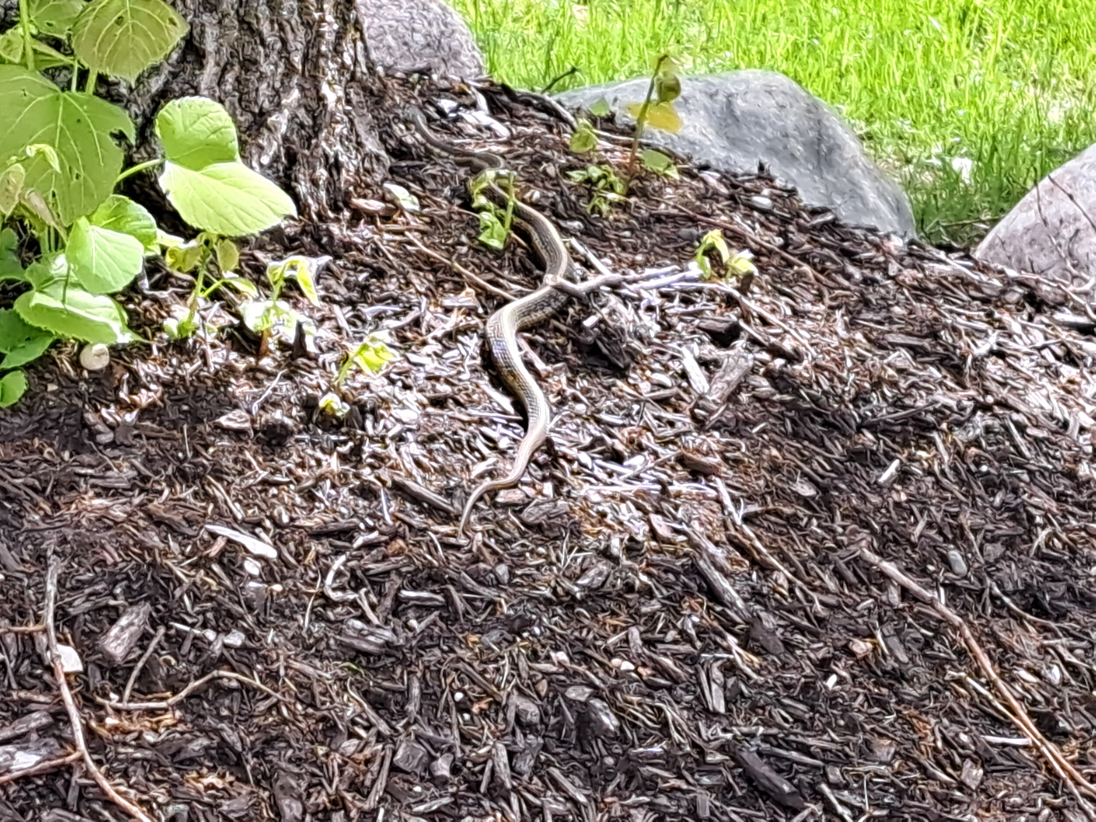 Three unusual “nature raw in tooth and claw” type images from that last visit to Wisconsin, this time around. Fear not, plenty of lovely flowers and even some great redwood bark and tree stumps waiting to be posted, so this may be the one and only time I’ll ever serve up snakes and dead fish on a lawn in this blog :-).