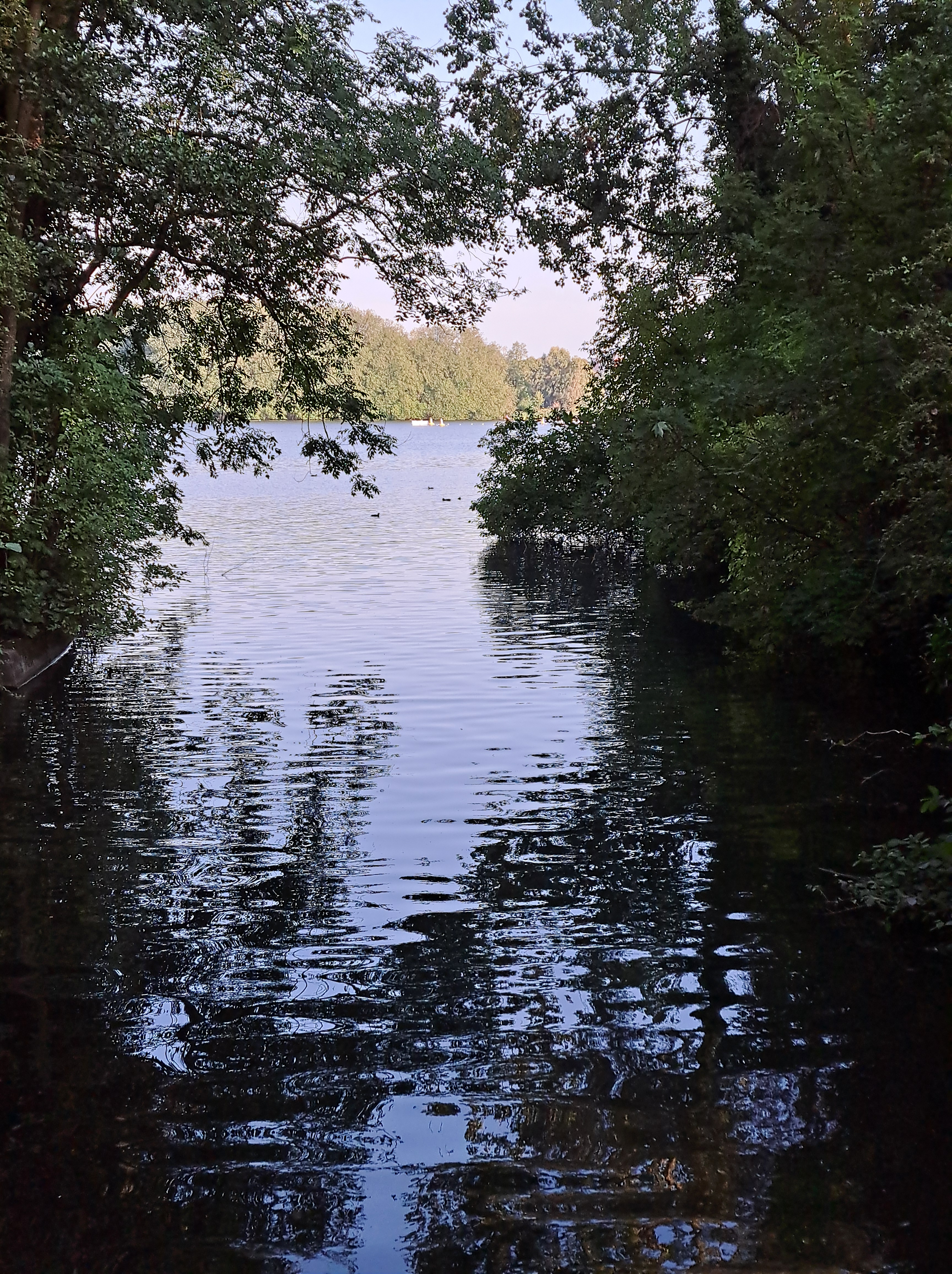 Indeed, right inside the city of Amsterdam but in the lovely park I’ve been showing you since I moved to my new place last year :-). Above, looking west one evening last week and below, looking east from the same foot / bike bridge over the canal. For orientation, in the photo below, the apartment from which I’ve taken all the various photos of this lovely lovely lake would be on the far side of the lake and to the left a bit (northeast).
