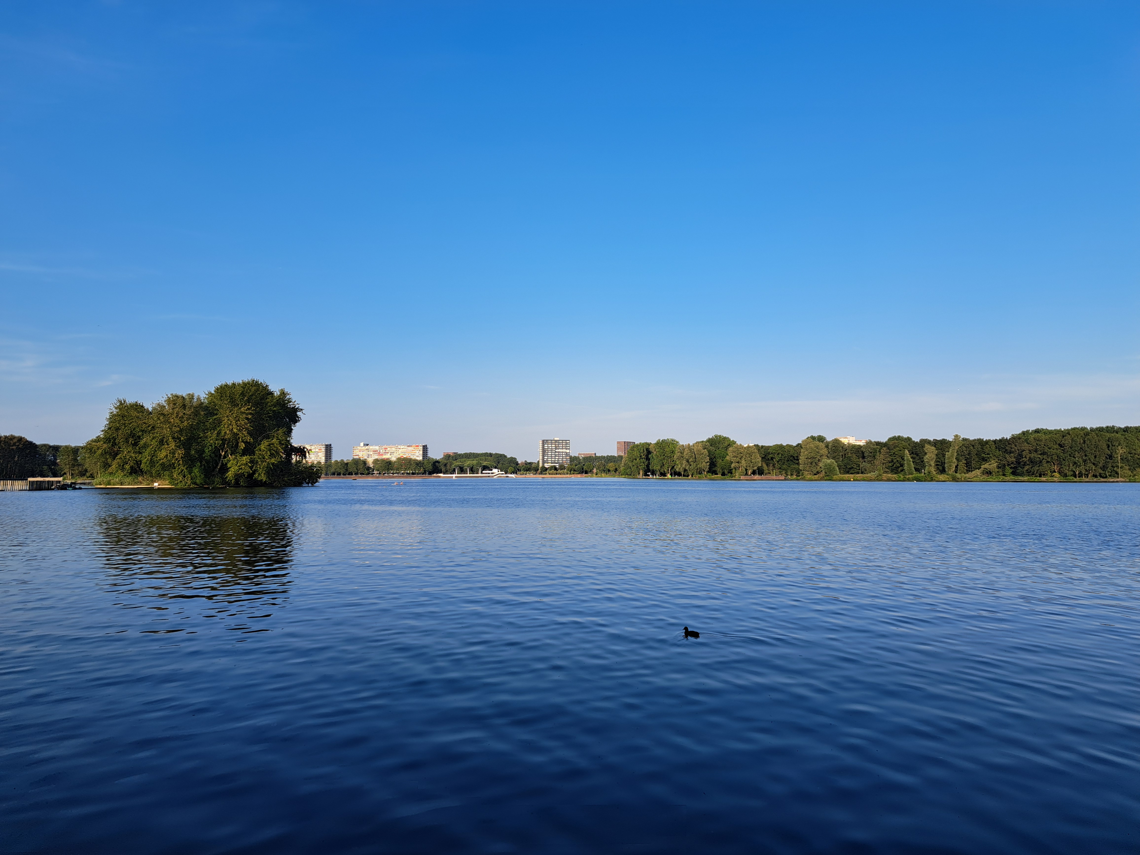 The island of the title is at the top left above, middle in the closer-framed image below. We’ve shown you this island before, but taken from above looking down at this lake: my home is in the tallest building you can see just above at the top middle, and you’ve seen and will continue to see many lovely photos taken from my windows near the top left of that particular building :-).