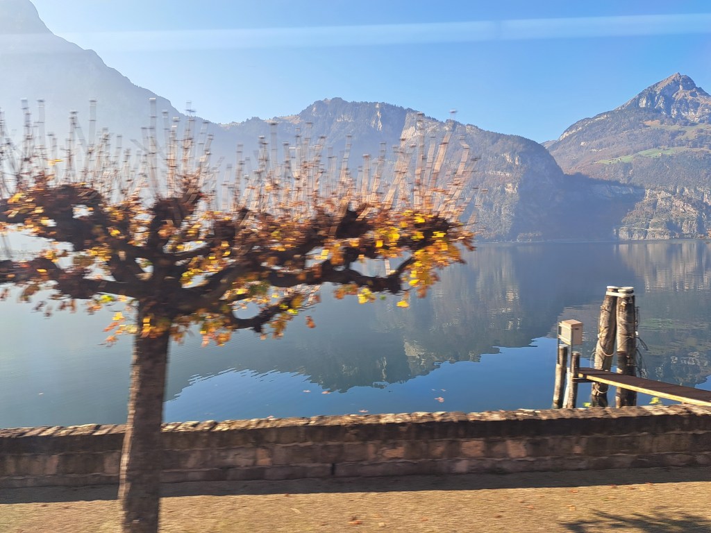 The blessing and curse of train travel through Switzerland is that you see so many beautiful things out your train windows, and you think to yourself “I’m sure I’ll remember which of the lakes and goregeous lakeside towns that our train passed through en route from Locarno to Zurich this one was.” And it turns out you’re wrong, because I’m not sure if these were taken along the eastern shores of Lake Lucerne, or the Zugersee. I’ll need to get back there some time to identify it properly :-).