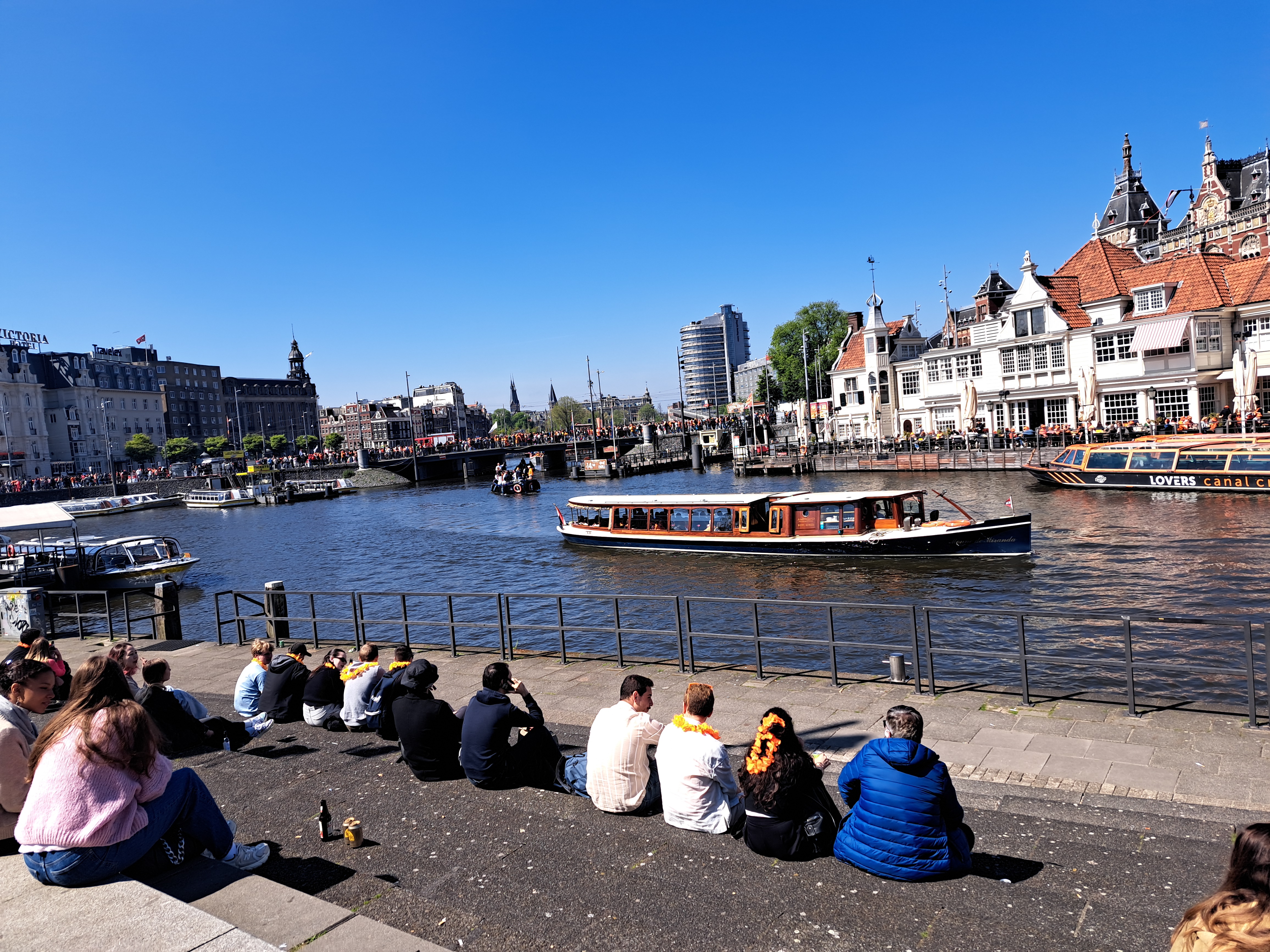 I didn’t do a very good job of capturing the vast crowds of happy orange-clad folks out enjoying Kings Day here in NL, last Saturday. I was too immersed in enjoying the mix of weather and energy in the crowd. Note that the main thing folks in A’dam do on Kingsday is wear orange, party and drink. Still, given that it’s the official celebration of the actual King’s actual birthday, it’s clearly Ah, Royalty qualified :-). This’ll be my last post for a while. I’ll take a break now and enjoy spring in Amsterdam, a couple of visitors, and the celebration in two days of the 80th anniversary of Liberation Day here in NL.