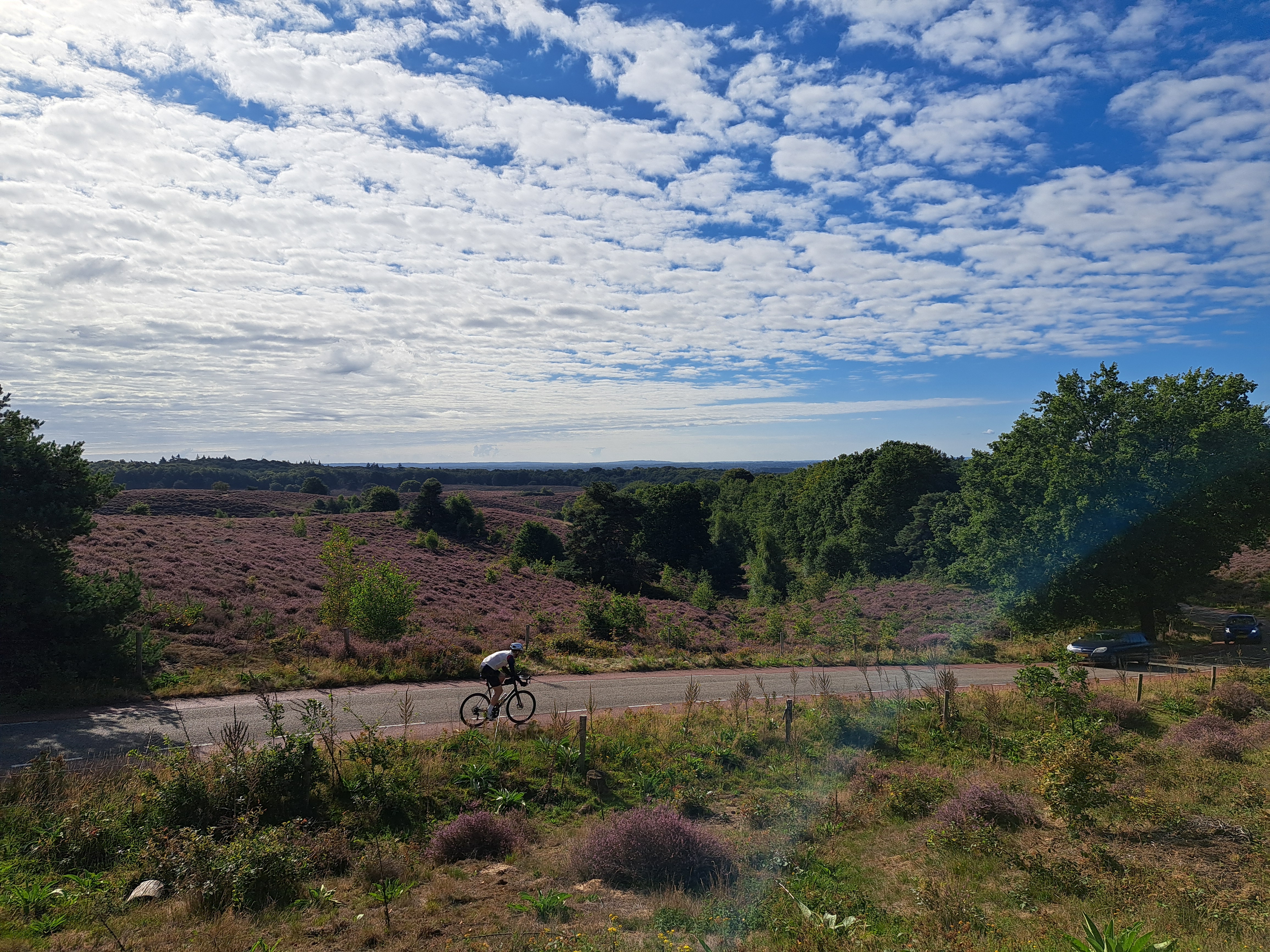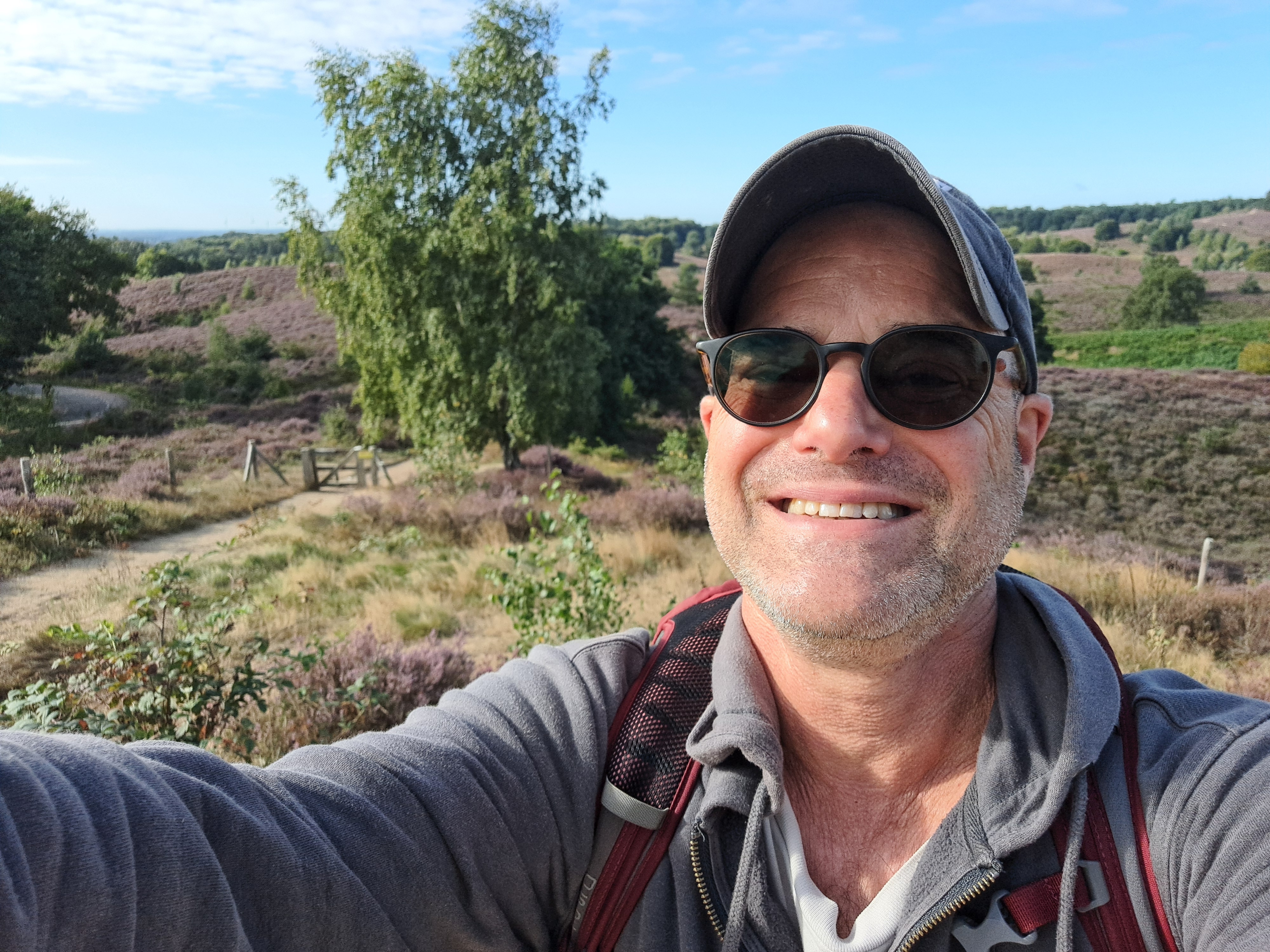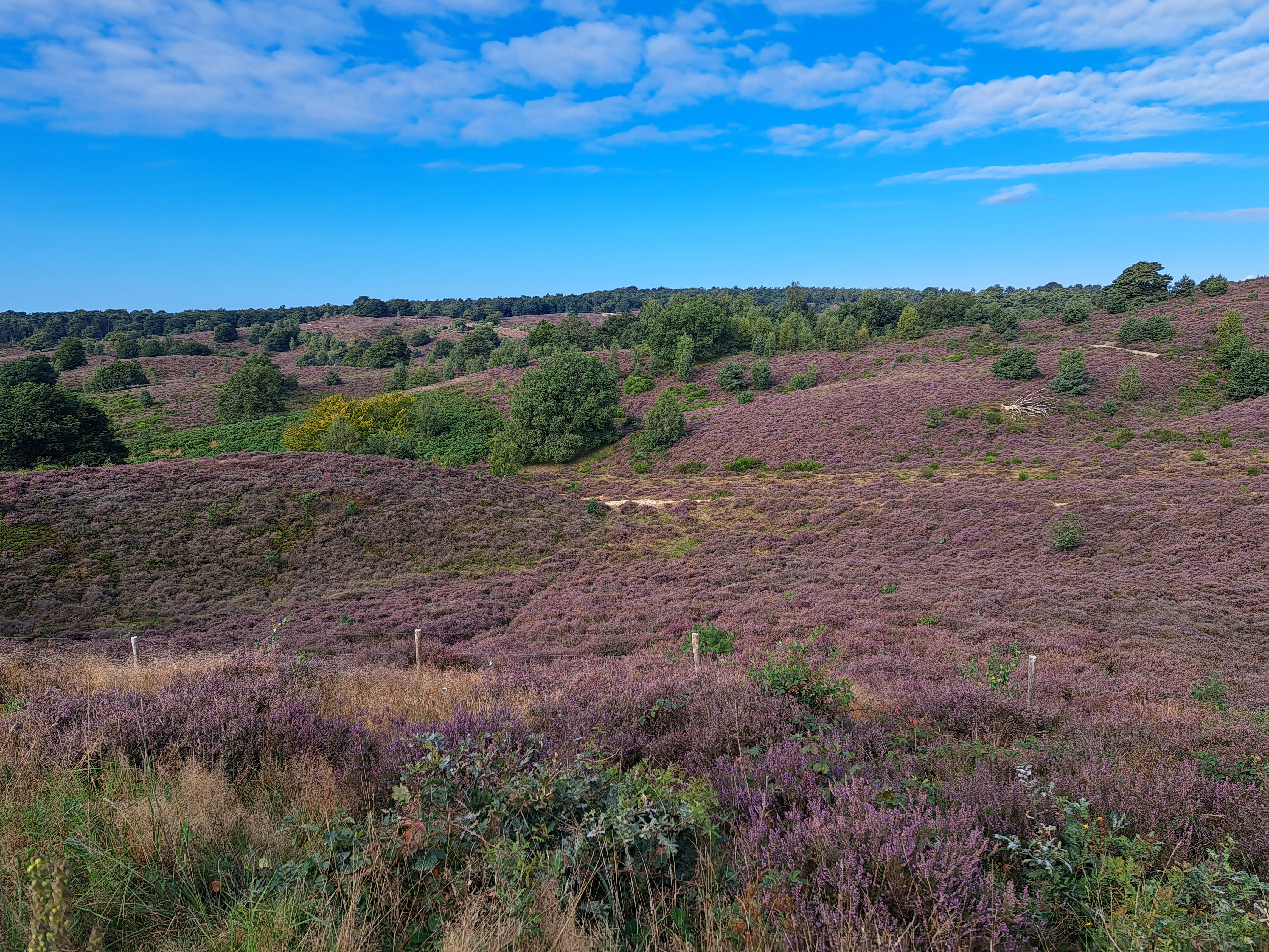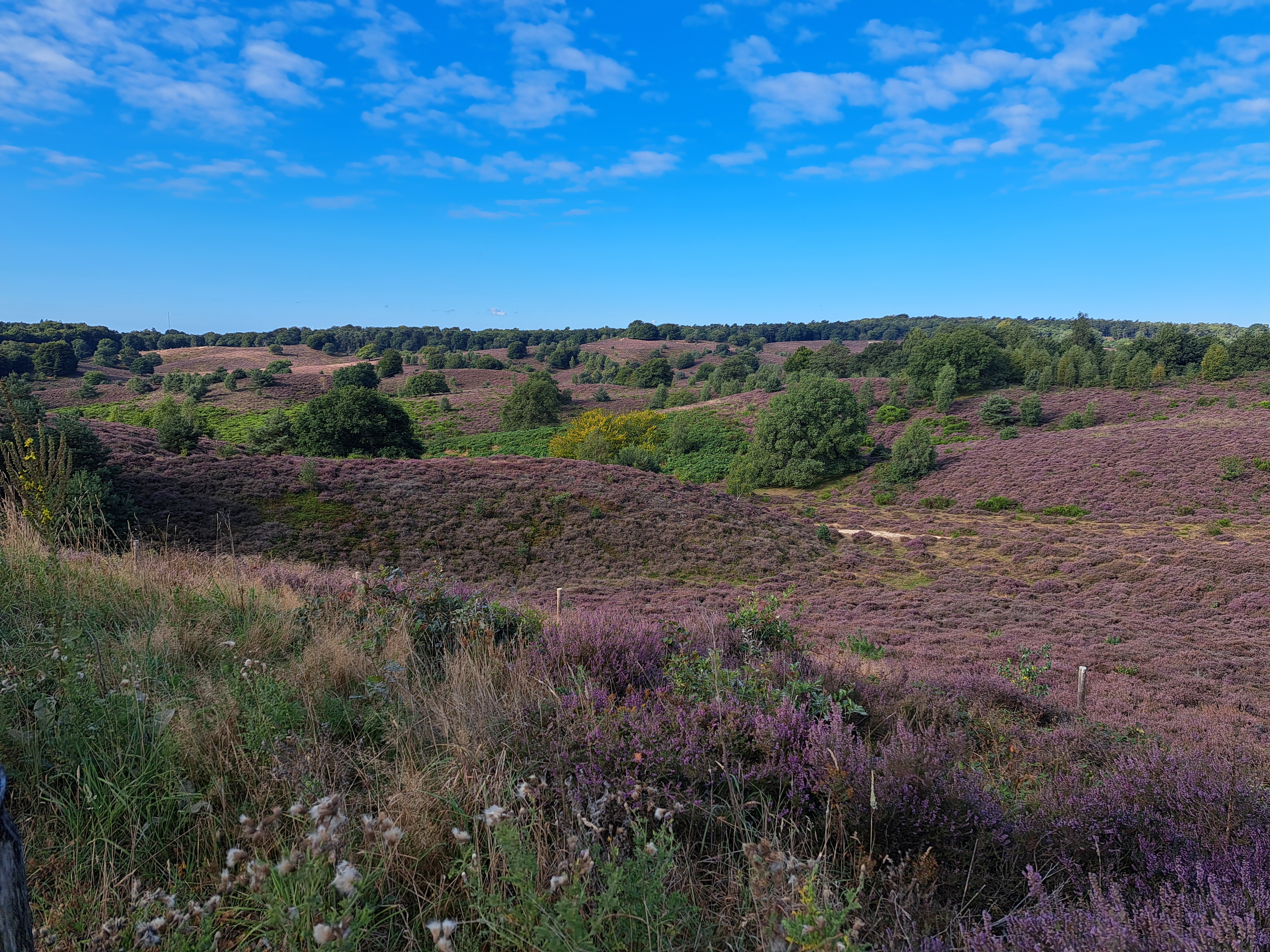 I took this photo less than 24 hours ago at the lookout point called The Posbank, at the dizzying height of 90 meters above sea level in the Veluwe Zoom, oldest of NL’s national parks. I’d biked through the park from north to south Friday, en route to Velp where I spent Friday and Saturday nights. Quite amazing, really, that the fairly large city of Arnhem (capital of Gelderland in which I spent all my vacation) is only 10 kilometers away from this gorgeous spot which felt really rather remote, though yesterday morning quite full of walkers, bikers, and those who’d driven their cars up to enjoy the views and the well-positioned restaurant behind this photo.