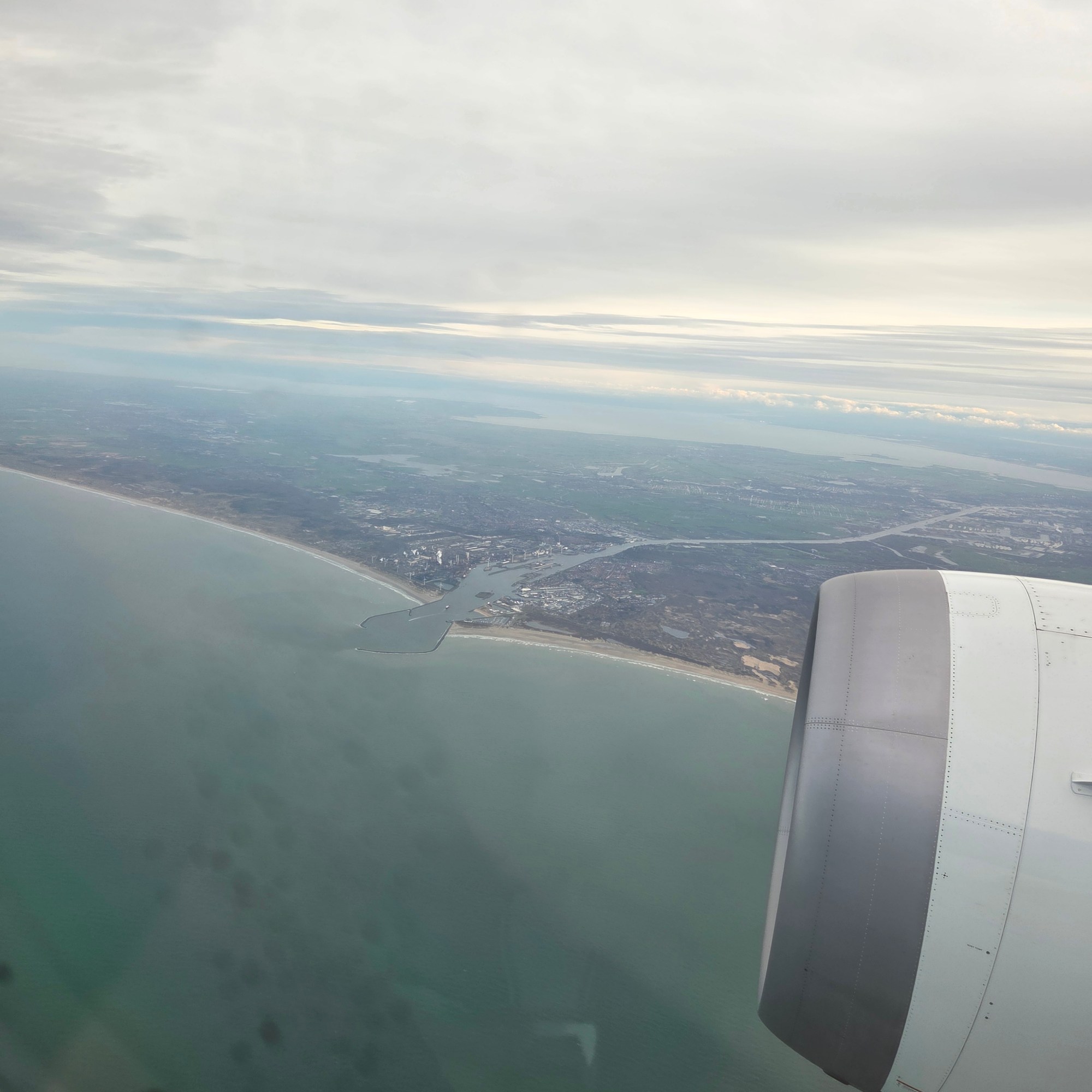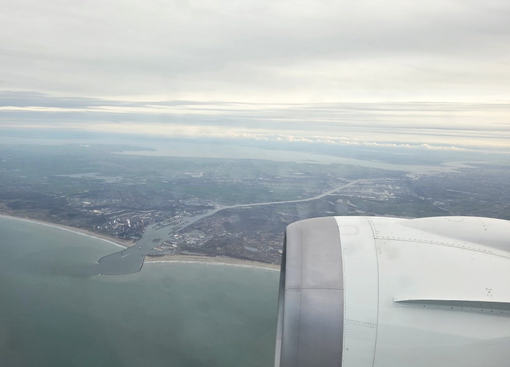 99% certain I’m showing you the city of Ijmuiden, a lot of North Holland (the province) including Amsterdam, the Markermeer & the Ijsselmeer, a lot of Flevoland (the province) and even bits of Overijssel & Friesland (the provinces)…what makes me 1% unsure is that, enlarge it as I try, I can’t really quite find Amsterdam landmarks that I recognize, which just goes to show how perspectives can change, or how much resolution one mobile phone’s camera can generate. These are all from shortly after takeoff for my December flight to ORD.