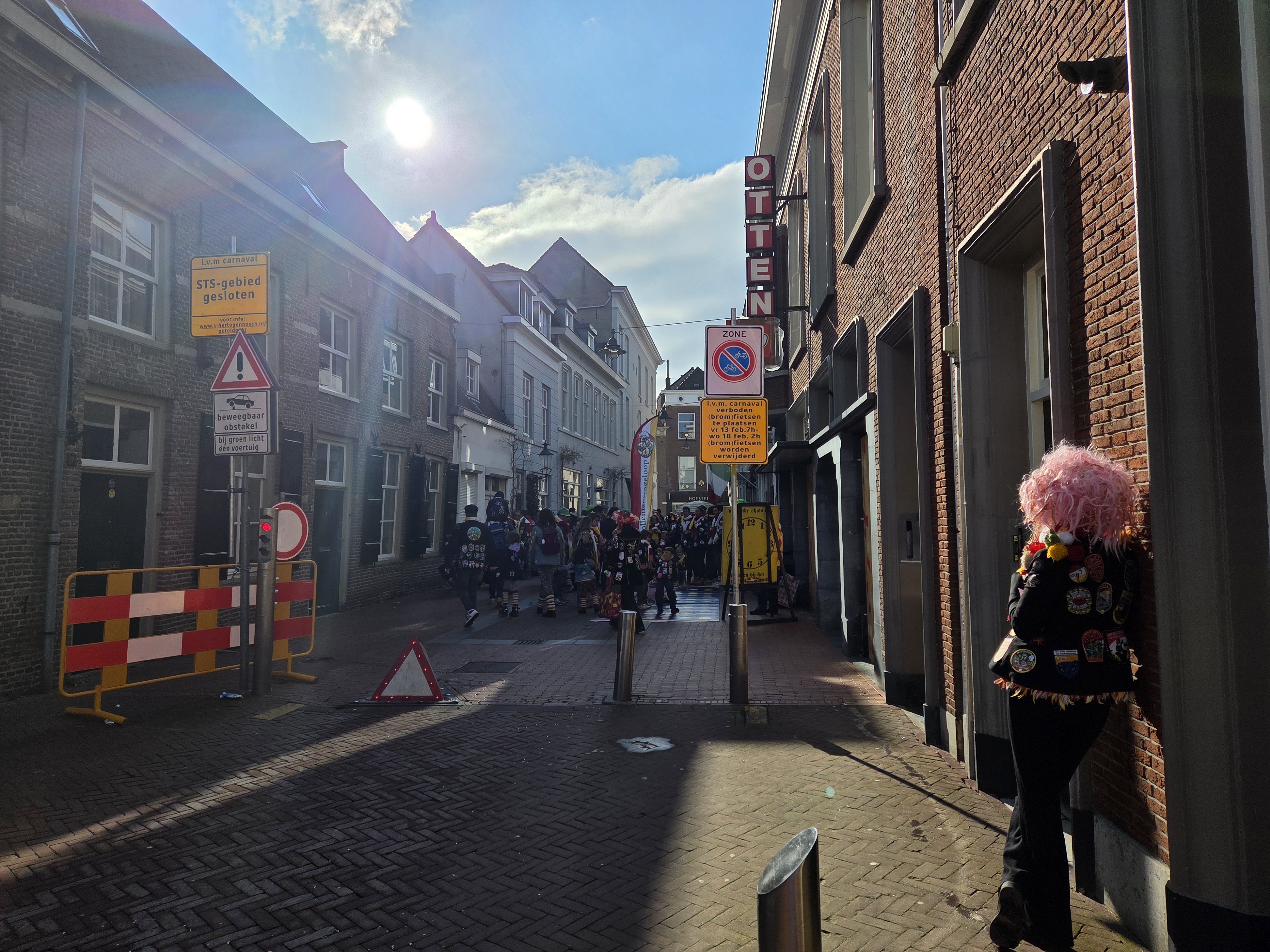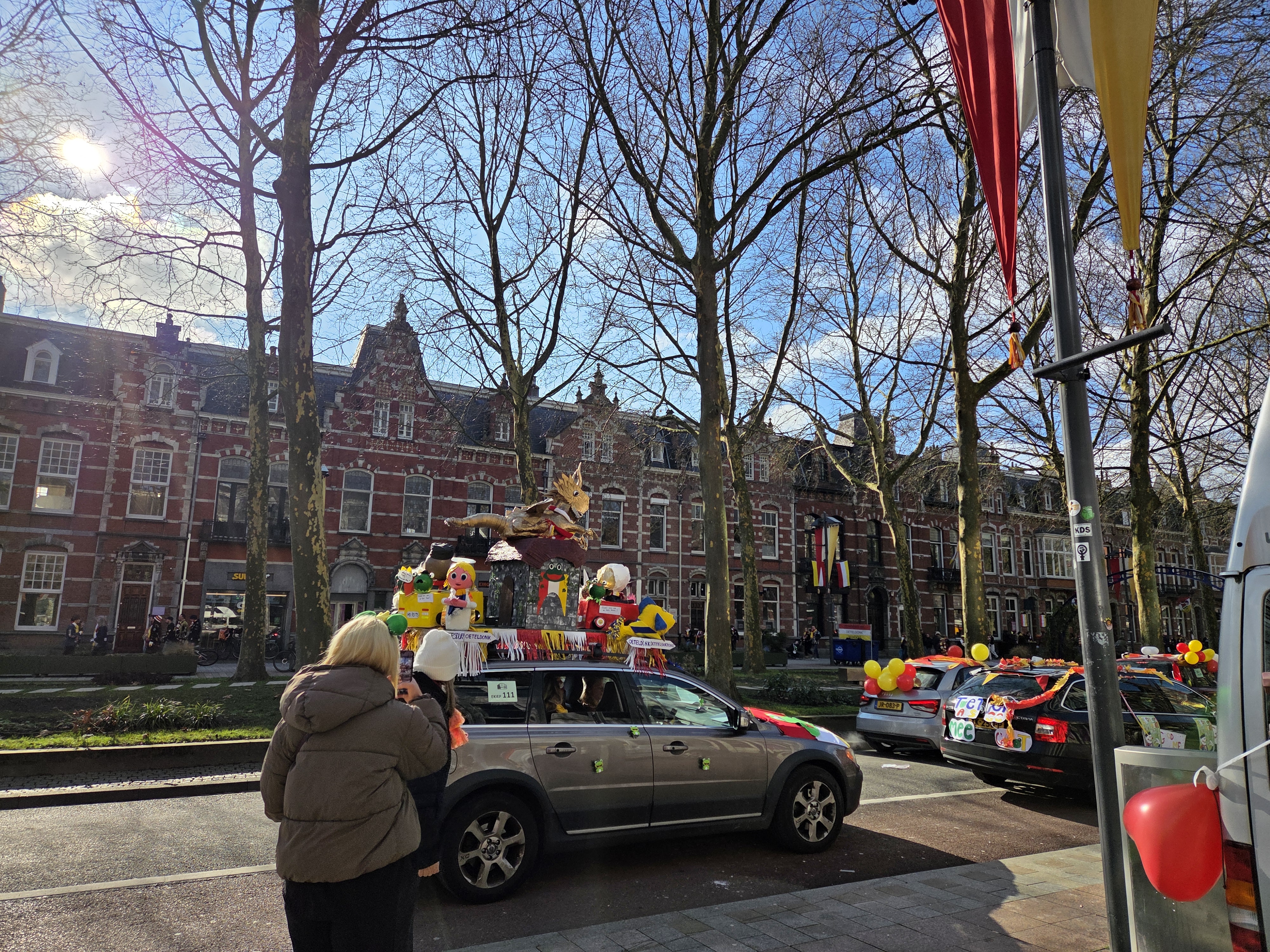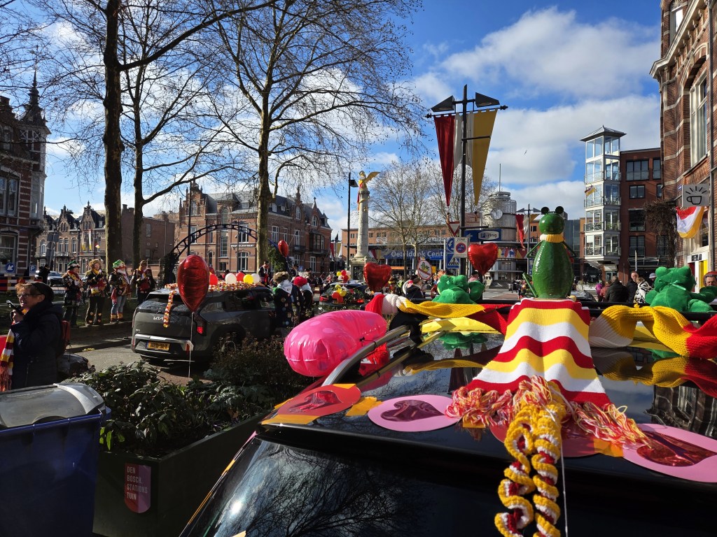 Recently I promised more photos from den Bosch, et voila. I (and work) treated me to a week of intensive Dutch at a school just south of the city, which ended on the weekend of Carnaval. Den Bosch is one of the two main provincial capitals in which I’ve always heard they take the whole Carnaval thing seriously. Above is the Saturday car parade with Den Bosch Centraal train station in the background: frogs, the red – white – yellow, jackets (usually black) with many patches, and general festivity are the theme. Below, more from Saturday and Sunday.