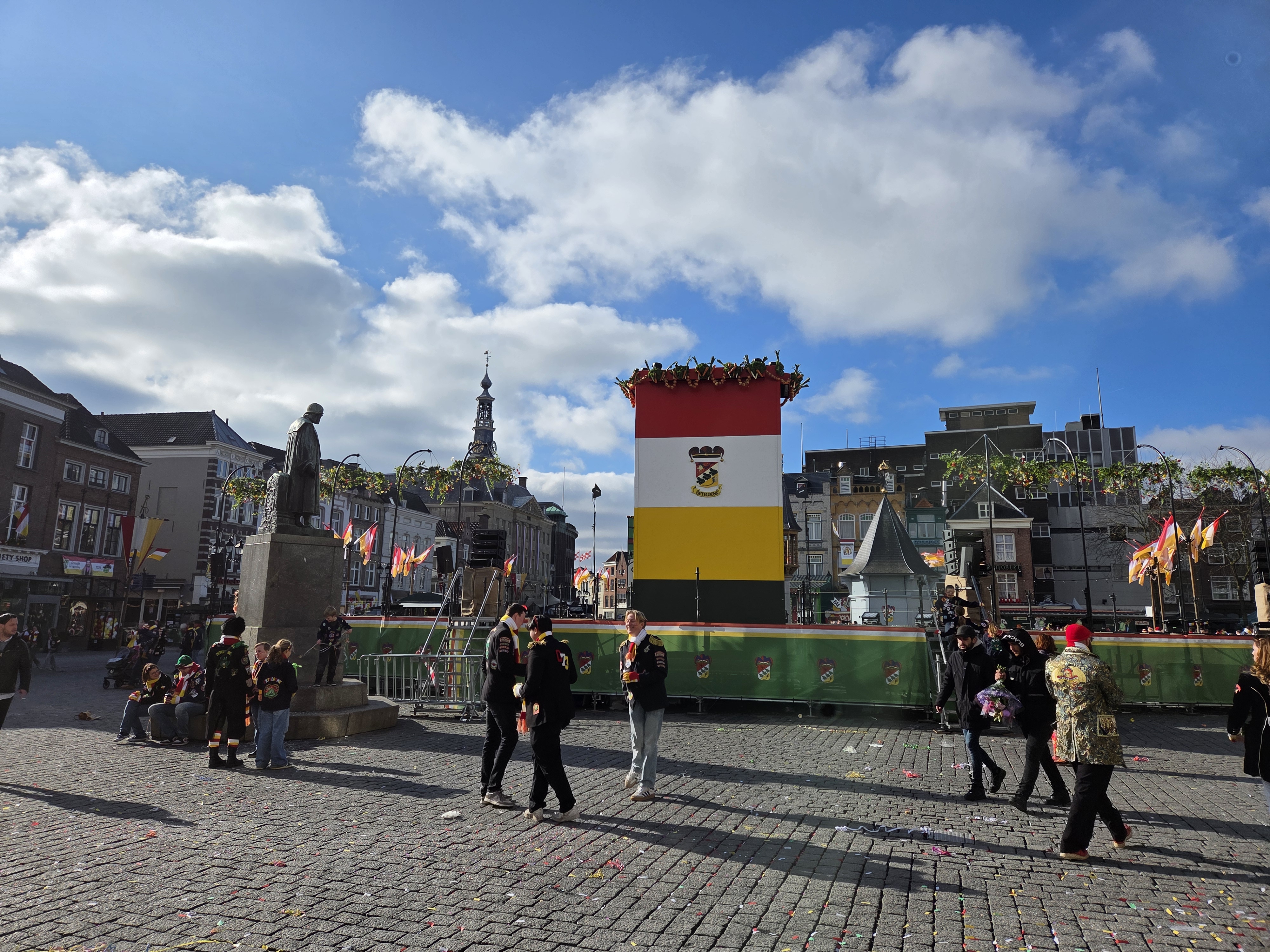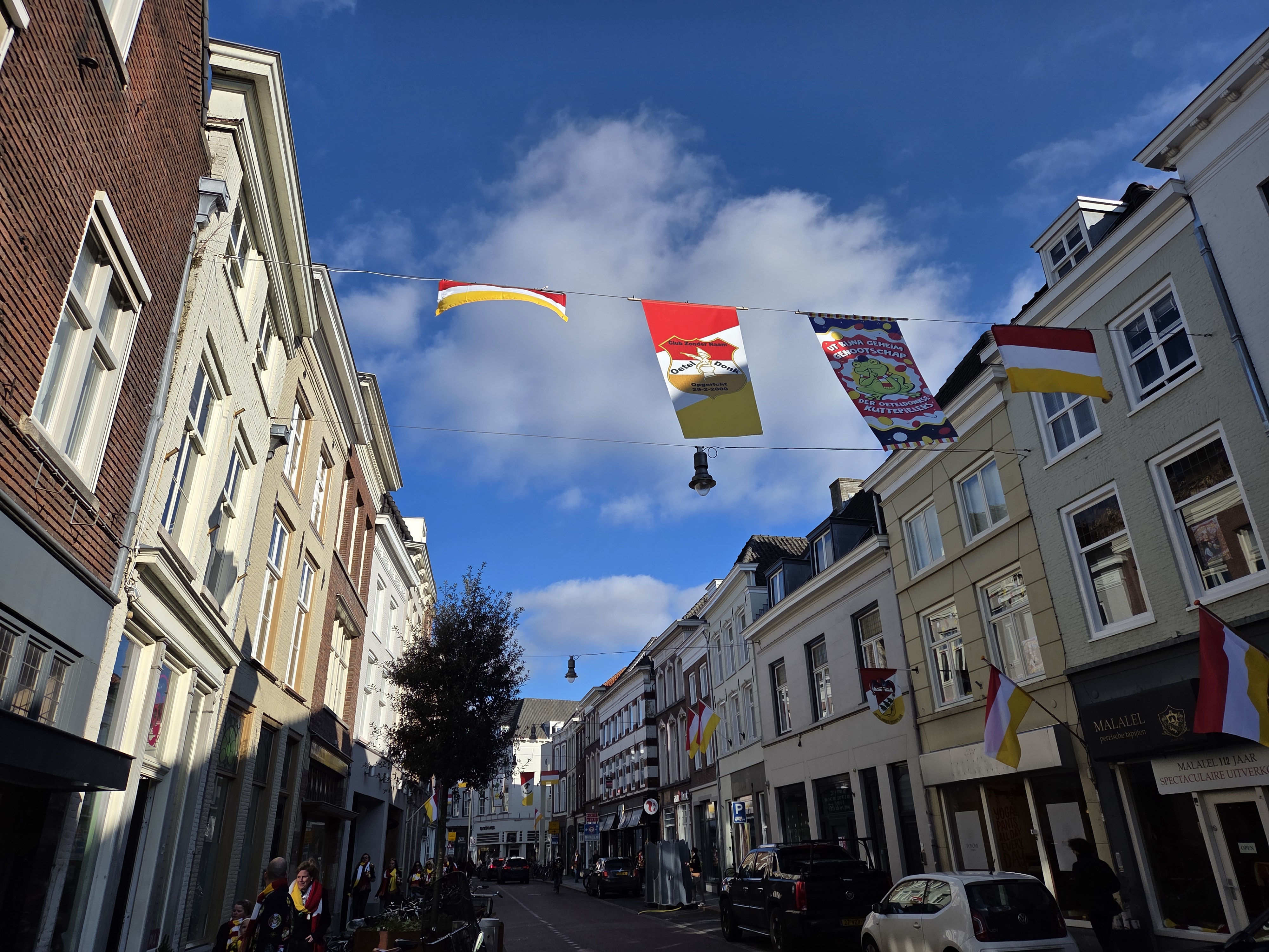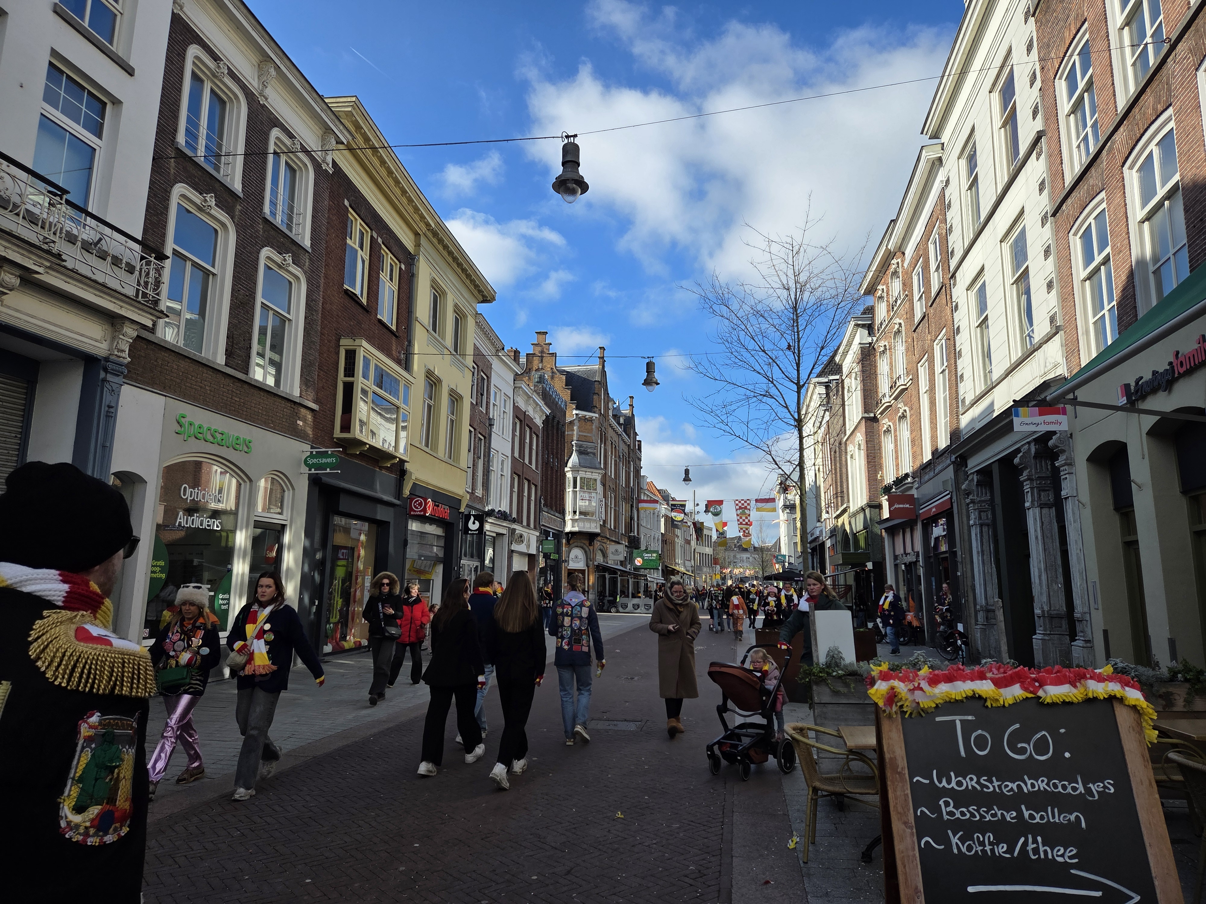 Recently I promised more photos from den Bosch, et voila. I (and work) treated me to a week of intensive Dutch at a school just south of the city, which ended on the weekend of Carnaval. Den Bosch is one of the two main provincial capitals in which I’ve always heard they take the whole Carnaval thing seriously. Above is the Saturday car parade with Den Bosch Centraal train station in the background: frogs, the red – white – yellow, jackets (usually black) with many patches, and general festivity are the theme. Below, more from Saturday and Sunday.