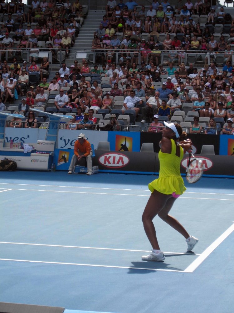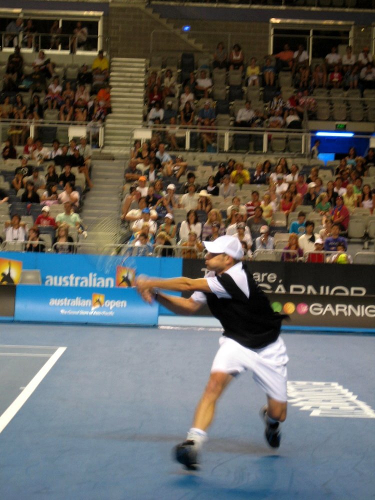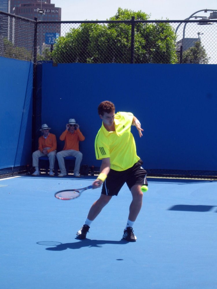 …the first week, I had literally courtside seats on Hisense Arena, the second-largest arena, as well as being able to see any match I wanted on the rest of the courts. That’s where I got these really close up shots of Venus – good thing I saw her in singles action during the first round, which she won; and of Andy, below.