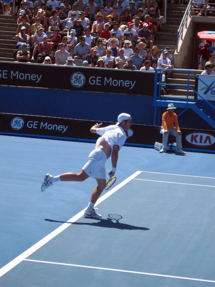 By far the most interesting women’s matches I watched were doubles matches featuring Ai Sugiyama and Daniela Hantuchova. Ai Sugiyama has to be the most polite player ever to grace a tennis court. Not only does she play her big heart out on the court, which is always great to watch, but she literally holds out her hand in semi-apology every time she hits a winning volley at the feet an opponent or between two opponents at the net. The message, it seems, is ‘I’m so sorry that in order to win I have to beat you.’ Probably the best women’s match for me was Hantuchova/Sugiyama’s three-set thriller over Black/Huber, a match whose final outcome wasn’t evident until the last point had gone down in the third-set tie-break.