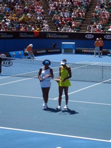 …I saw several of Venus & Serena’s doubles matches, including this quarter-final trouncing of a Chinese team on an outer court where I had the pleasure of sitting in the very front row.