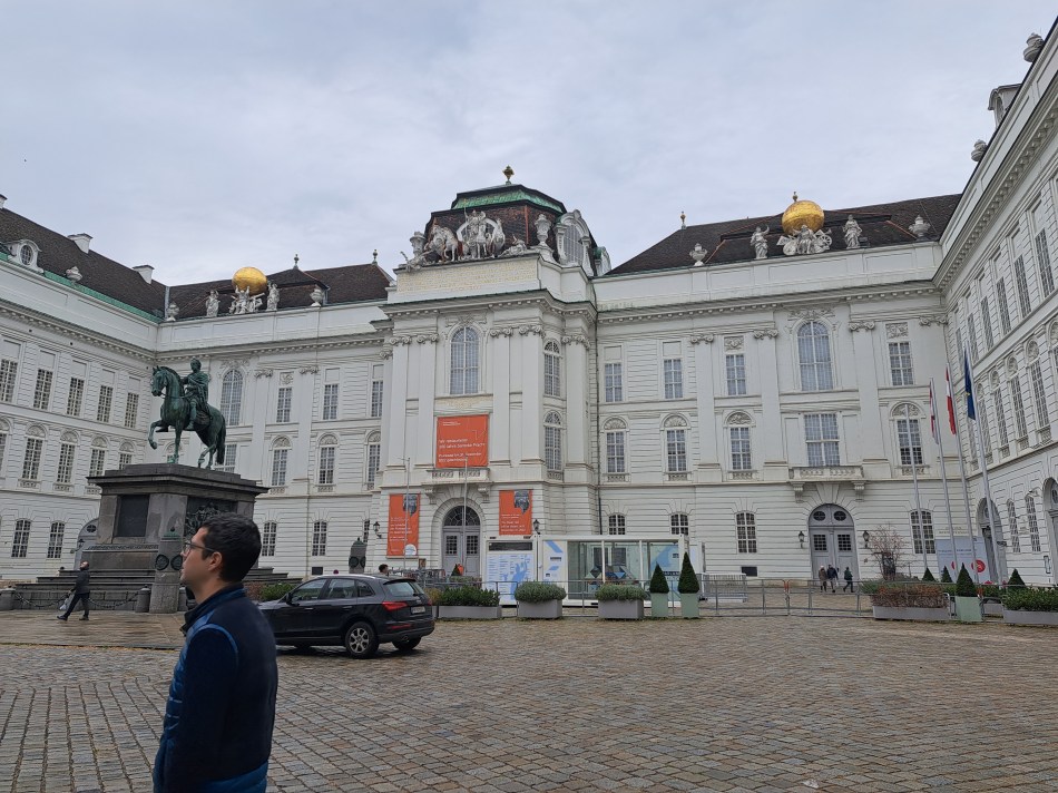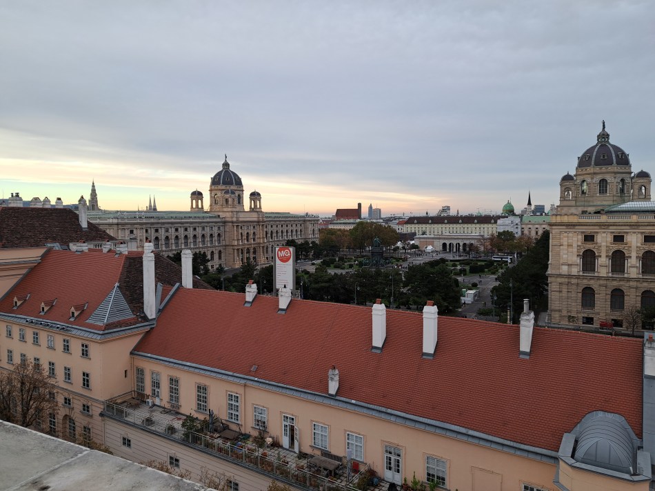 Pretty much all the remaining Vienna photos here, including shots from (below) the roof of a museum inside the “MuseumsQuartier” complex which encompasses the land on which the former imperial stables were housed and (above) one entrance to the huge Hofburg complex, aka the main imperial palace are which now houses a mix of state offices (e.g. Austrian President’s office) and public museums.