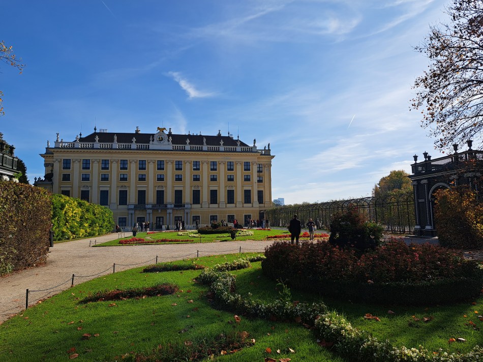 All my remaining photos of the grounds and building of Schönbrunn Palace. Just above, the west wing of the palace as seen from the west gardens, and above that, a greenhouse we didn’t enter, on the west side of the grounds. Immediately below, two photos I snuck while touring the rooms inside that wing and the rest of the palace: the photo out the window is looking out towards the Gloriette, built at the highest point in the park and from which (or of which) came most of the photos in the larger gallery further below. Just below the two circular indoor photos is one of my total favorite elements: a fake Roman Ruin! Yes, the Habsurgs must have suffered from imposter syndrome because they seem at some point in the 18th century or so to have decided it would enhance their prestige to have a “Roman Ruin” on the grounds of their summer palace. Umm, ok…. :-).