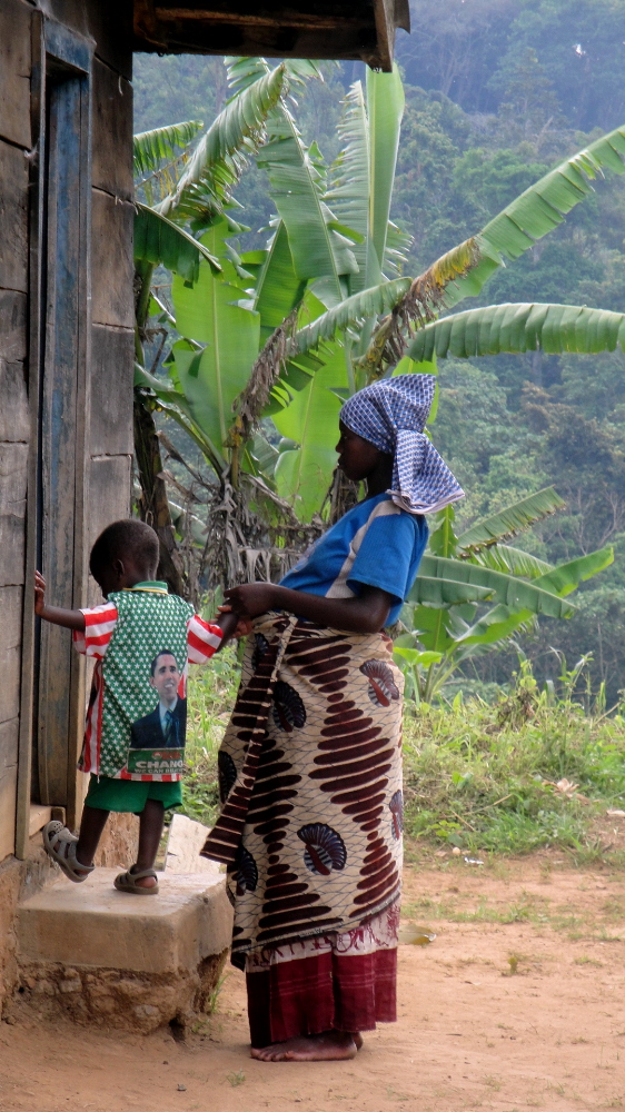 Above, my friends, is the start of the health post (private blog, I know, but I’m both publicly and privately proud of what we’re doing here), and below is a young patients (at our current mobile clinic, with his Mom) in the single most popular form of t-shirt worn by kids in our zone: the Obama t-shirt, which comes in dozens of varieties and can be seen everywhere.