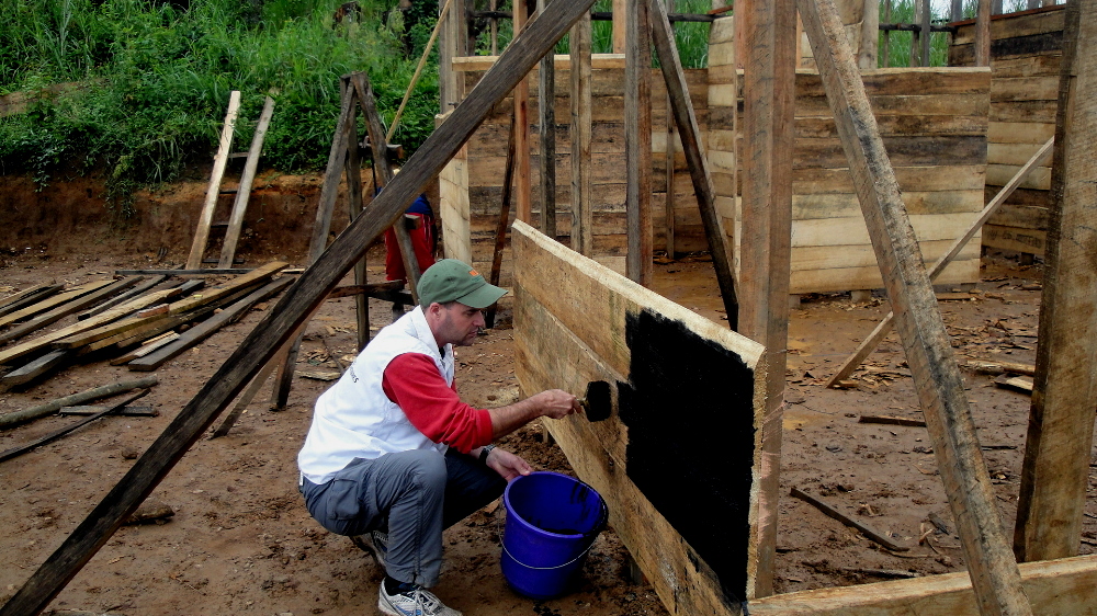 I’m learning a lot about the traditional building style in the region – you may have noticed that the foundation goes in last? – and about the anti-insect properties of used motor oil on wood. The planks are shaved so they’ll overlap each other nicely, thus providing a touch more weather protection.