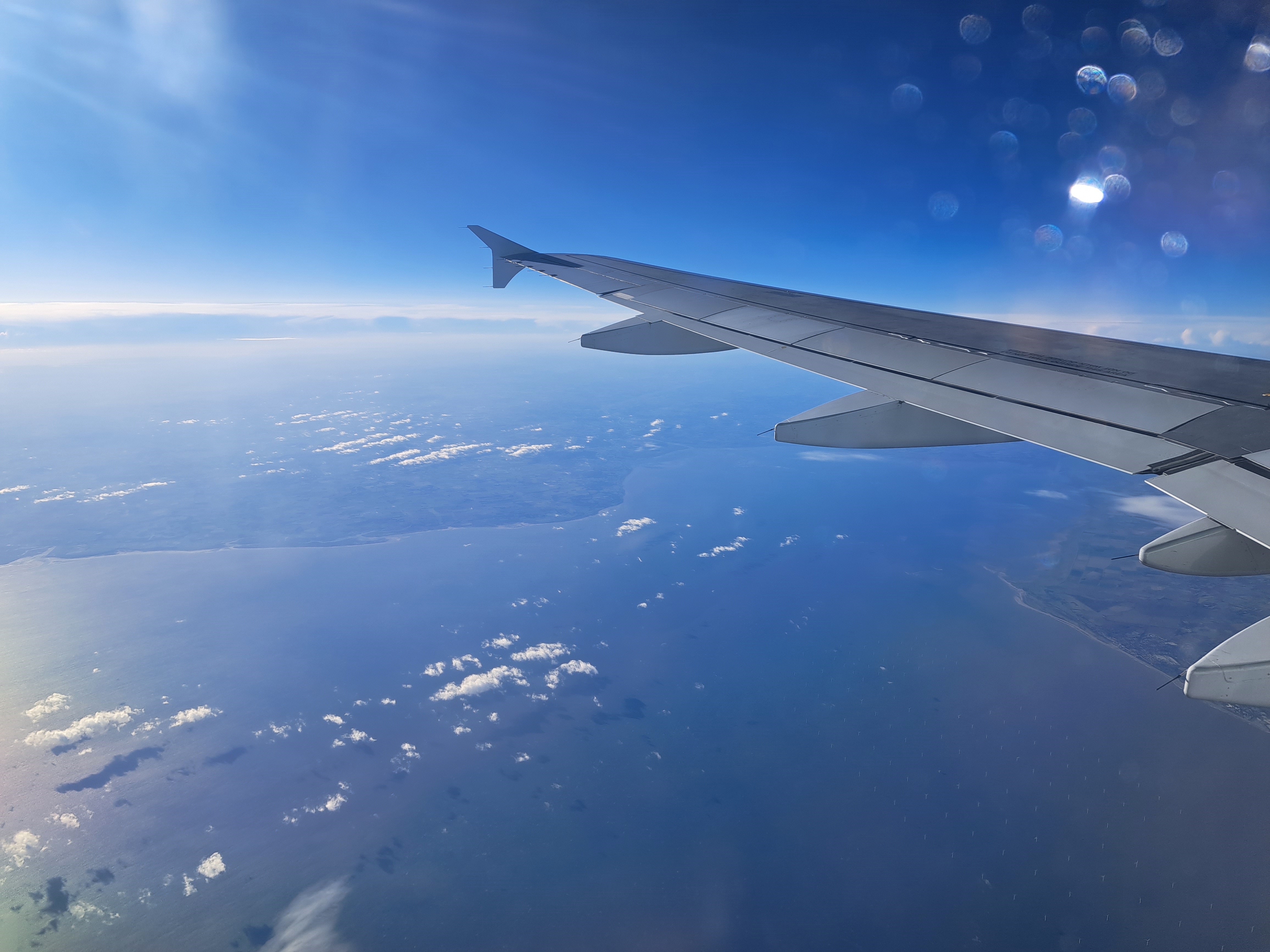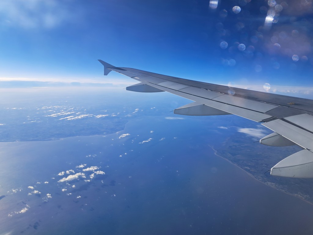 Sticking with my theme of using up more of 2023’s photos before taking my break, herewith all the remaining from-the-air shots of 2023. They’re in chronological order, so you first see my plane passing over the Dutch coast on 6 November en route to Dublin, then more of the English coast both on the east side (North Sea) and the west side (Irish Sea – so far as I could tell, we passed roughly over Liverpool, but clouds…), and then two 29 November images of the island of Penang and the sea north of it as we approached landing after my flight from Qatar to Penang (with a stop in Phuket); and, finally, 6 December photos as our plane traveled up the coasts of Malaysia, Thailand and Myanmar en route from KL to Yangon. Not really sure which islands we’re seeing in these various shots, but fairly sure most were islands in Myanmar by this point.
