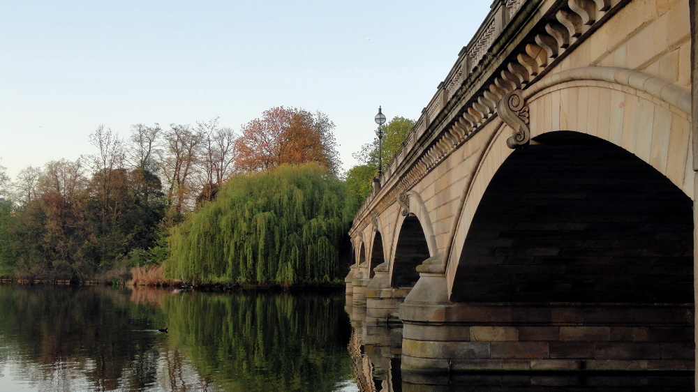 Oh, right, about the photos: mostly taken on the South Bank and some in Hyde Park; as you may know I pride myself on not taking the tourist-standard shots of the most famous landmarks (think how James Bond films always tell us we’re in London with a closeup on ol’ Big Ben; I attempt, feebly I know, to distinguish myself at times by my off-center approach), but felt that, after all these years of visiting London, perhaps it’s time for me to take my first photo of such classics as Big Ben and St Paul’s, or such new classics as the Eye. These are mostly South Bank shots, and my love affair with the fish-shape lamp poles on the South Bank, with a few views from Hyde Park. How unusual that I don’t have any flower photos. If you see any in this posting after all, it will mean one thing: that after drafting this and loading all the photos I had, i decided on one more pot of tea at the Serpentine Bar & Kitchen, and on the way finally got a few flower shots to add some color here…think of me, sipping my pot of tea and looking out at the lovely serprentine as shown in one of those lower photos here. That’s the image for this trip…that and, of course, many a concert and play…