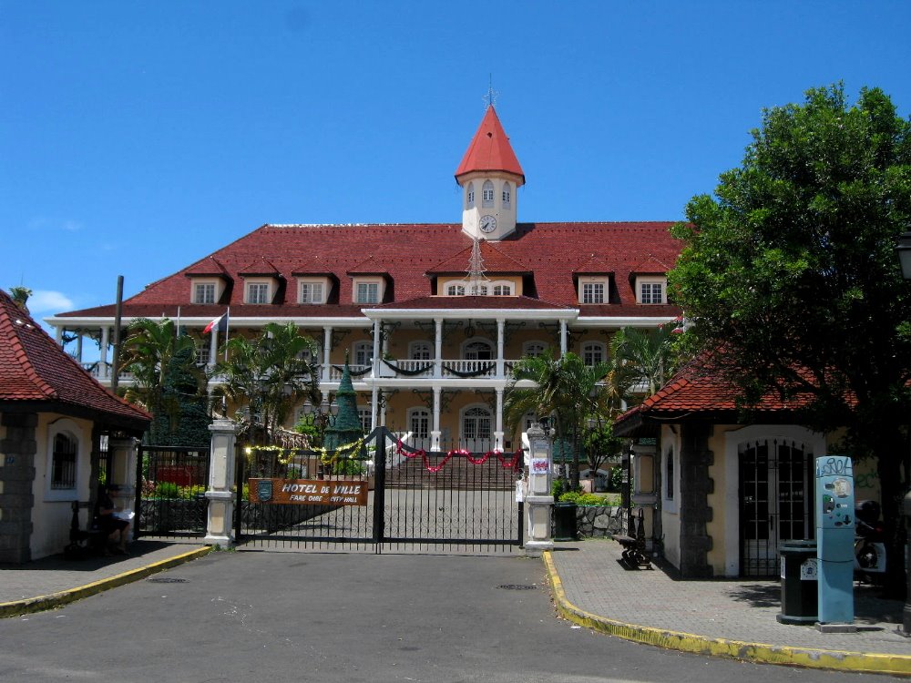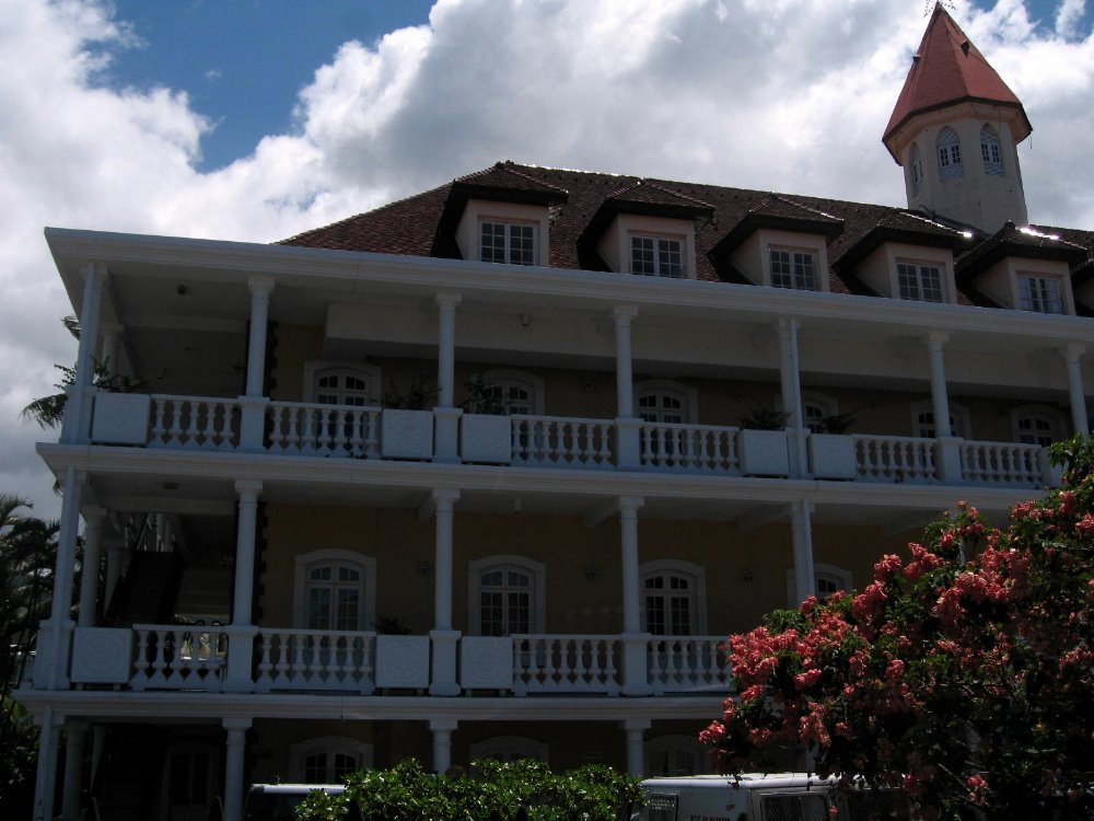 Above, a few shots taken around town in Papeete, the capital of French Polynesia and the main town on Tahiti. You can also see Moorea, a next-door island, in these shots as you could from the beach at my hotel, which is several miles back east or counter-clockwise around the island. Below are several shots of Papeete’s Town Hall, all decked out for Christmas — I took these shots on December 31st in Tahiti. Nice way to truly see out the old year, huh? 🙂 Tough life, but someone’s gotta do it…
