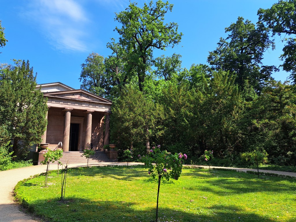 Peacock Island (Pfaueninsel) in the Wannsee – Havel lake and canal network in the SW corner of Berlin along the border with Brandenburg. When West Berlin was surrounded by a walled and guarded GDR, this was a lovely natural escape from the city vibe, which I myself first visited with my mother in May 1980. Steve – now a renowned and published scholar in German studies – and I spent a delightful late-May weekend in Berlin recently, during which in addition to fabulous educational narration from him, we did a lovely cruise during which we also stopped off and re-explored this island, a former royal back-to-nature pleasure garden from the 18th Century, complete with peacocks to add to the vibe, and royal dairy built to look like a monastery.