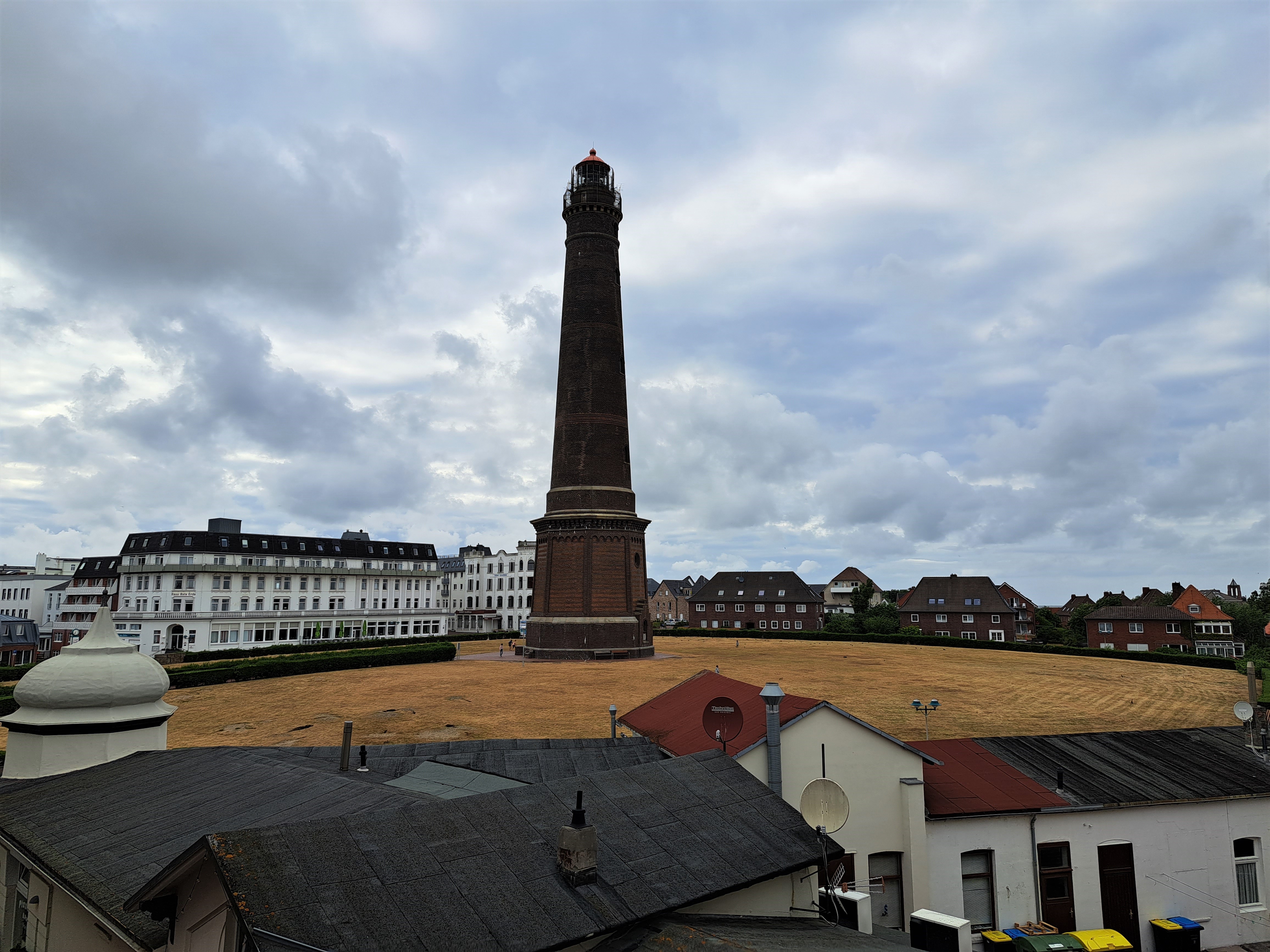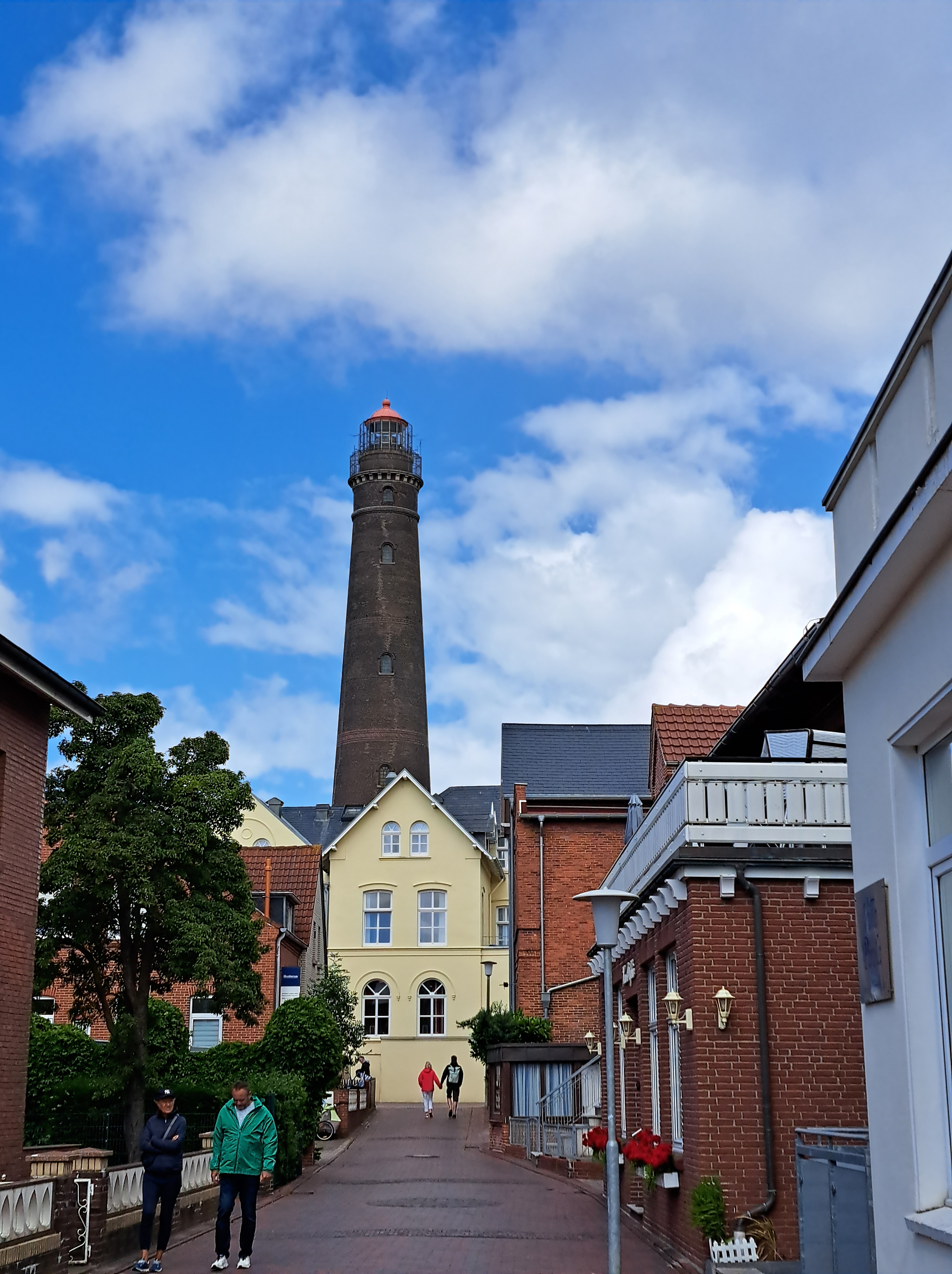 Borkum has three lighthouses, all of which you will see in due course, more than once most likely. This one is called the New Lighthouse, and sits now in the middle of the main village on the island, a short walk from the main beach and also from the mini-train station, which is what conveys most ferry passengers to town from the ferry port several kilometers away. (There are car ferries, but most folks don’t bother bringing cars over it seems.)